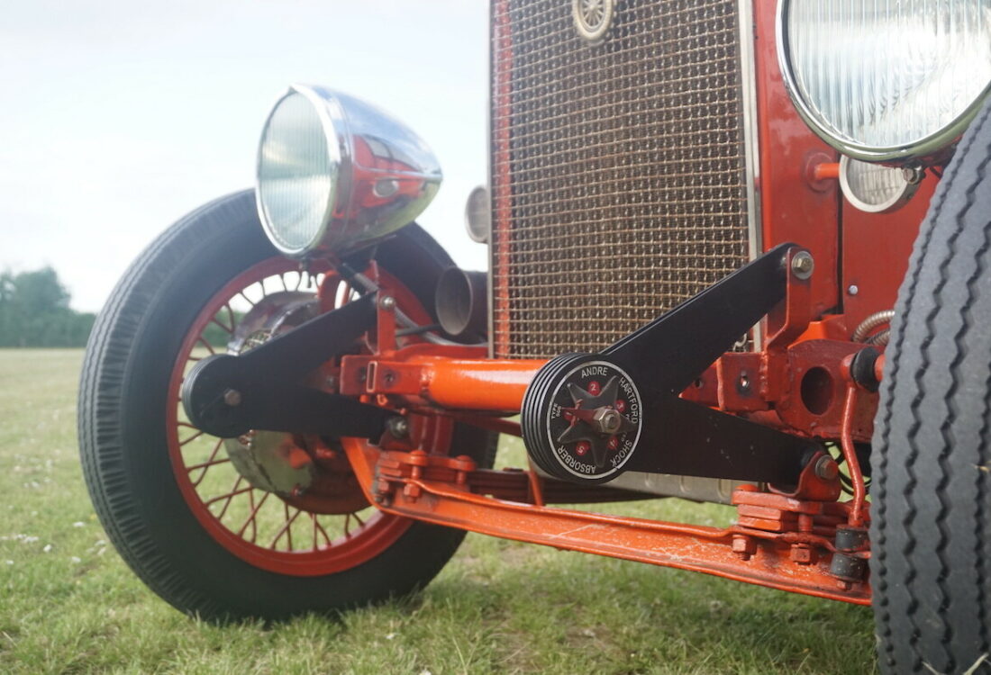 Boîte de vitesses à 3 niveaux, double amortisseur par roue. Jantes 19 pouces, volant extractible, poids 950 kg. Passeport de régularité FIA en cours.
