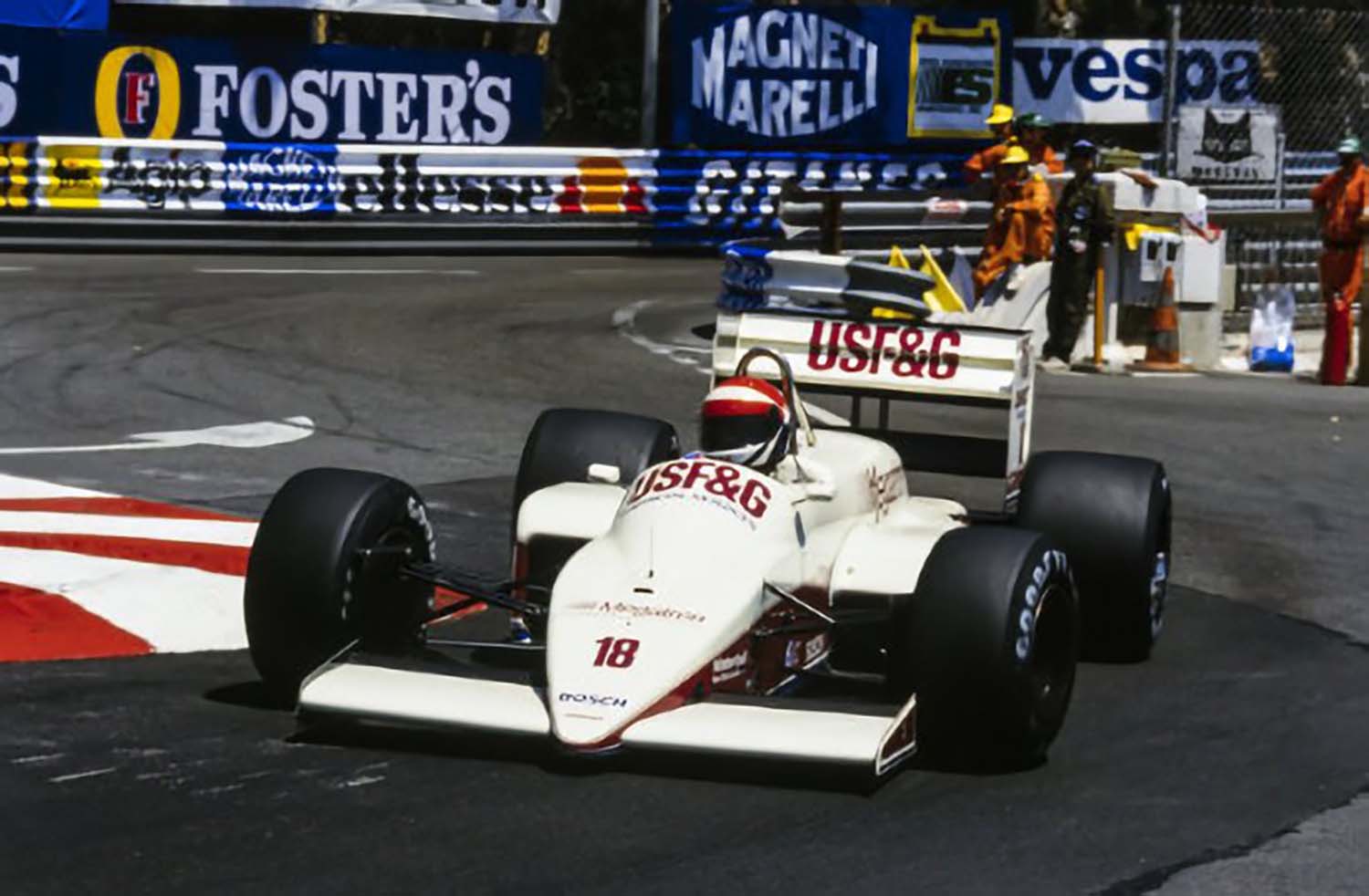 His only Formula One race in 1986 was in Detroit for the Haas Lola team.