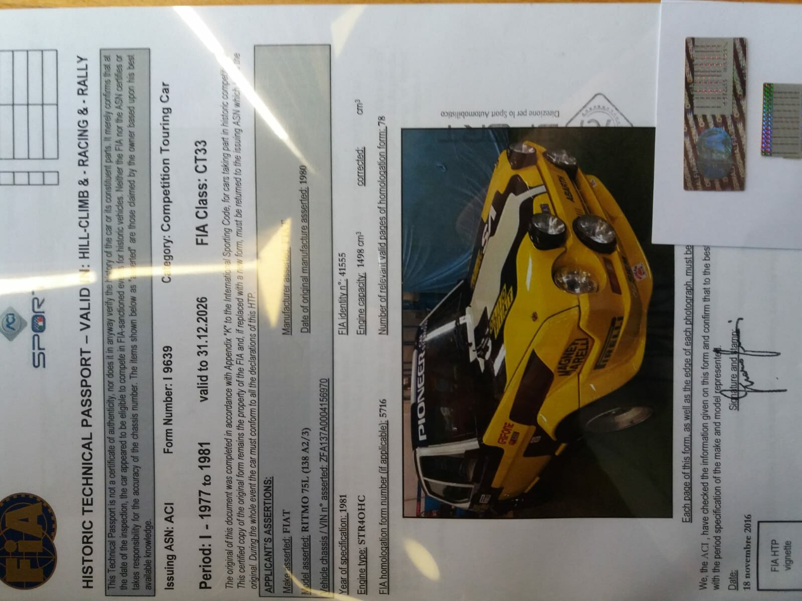 Vends Fiat Ritmo Abarth Full Groupe 2. PTH FIA.