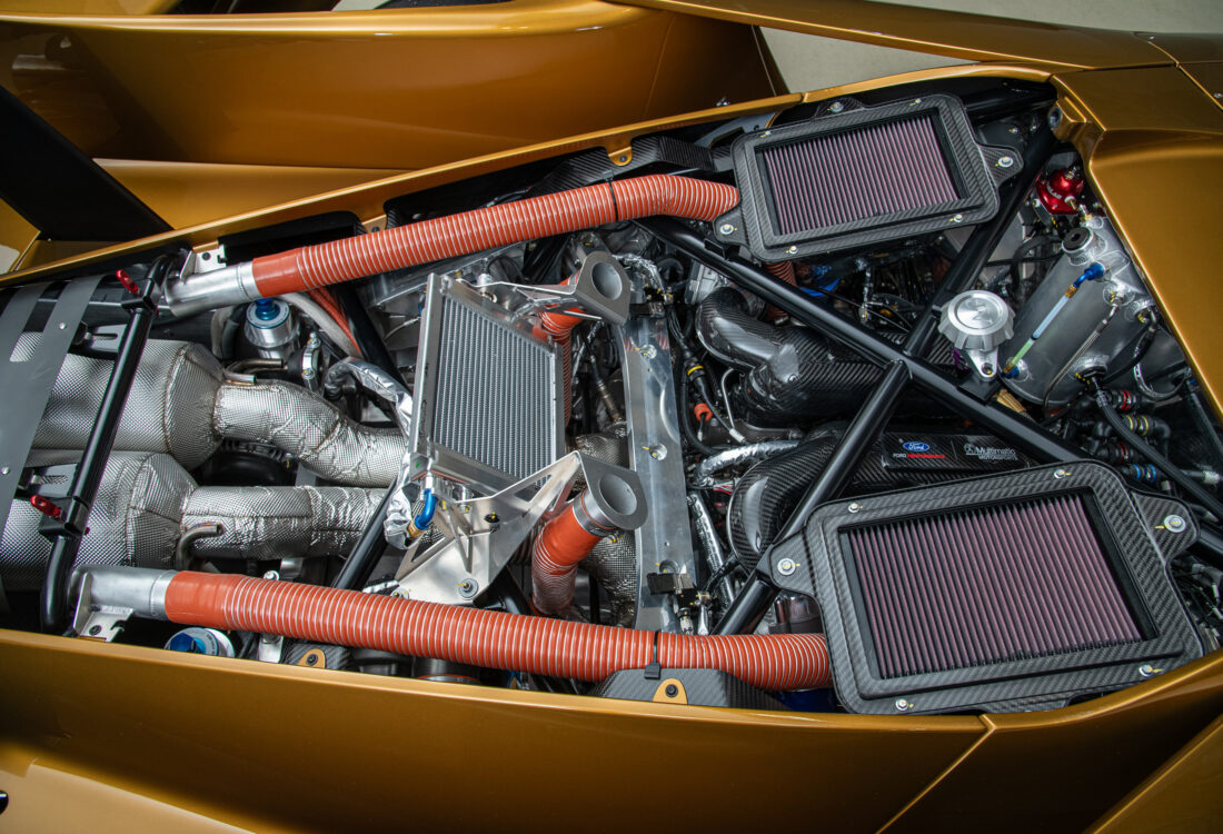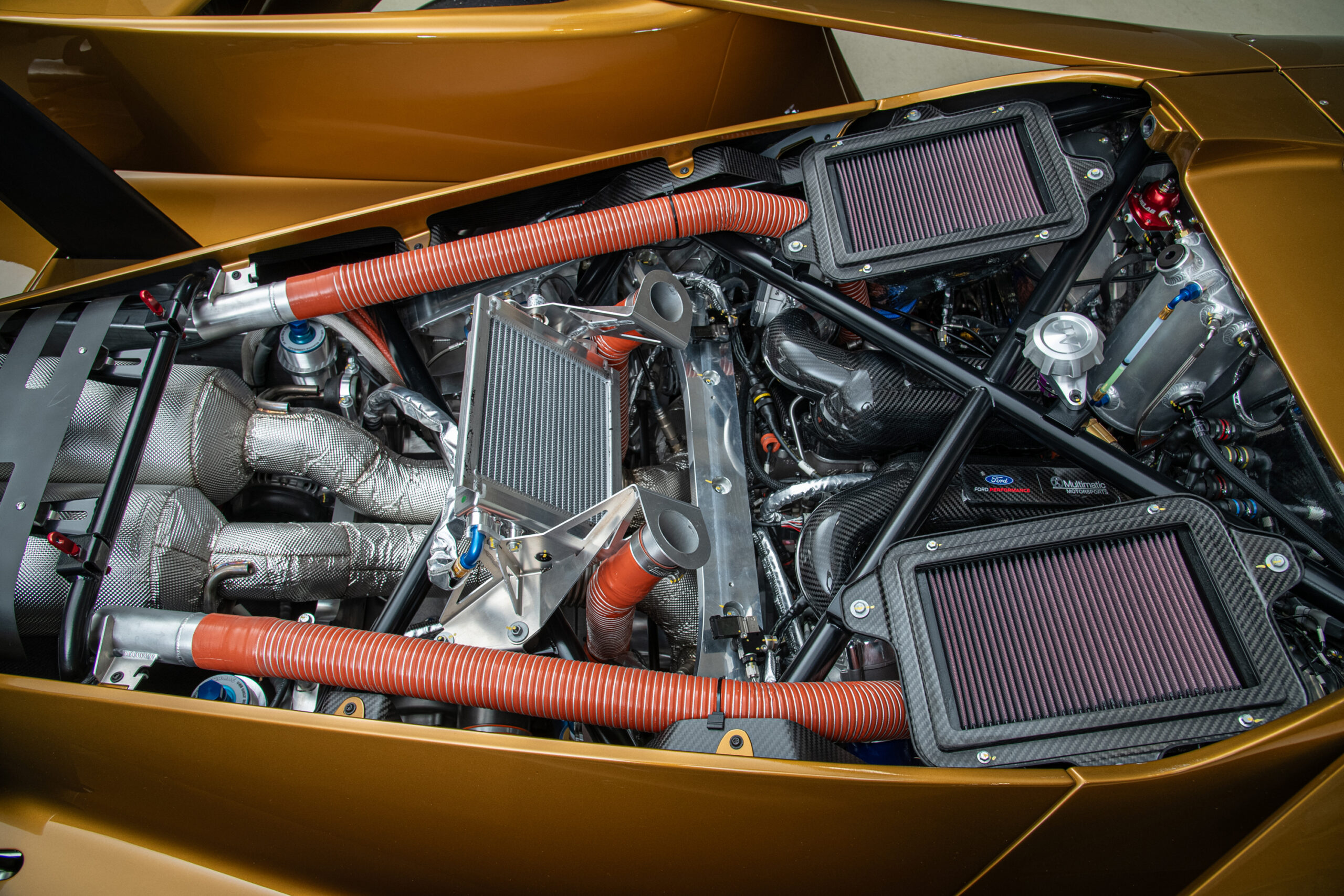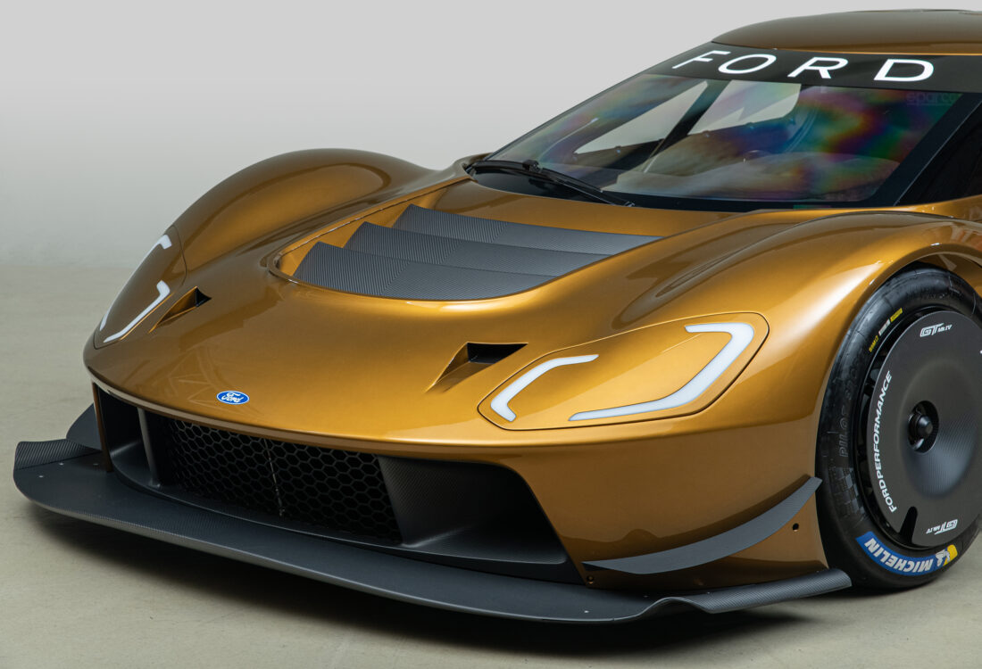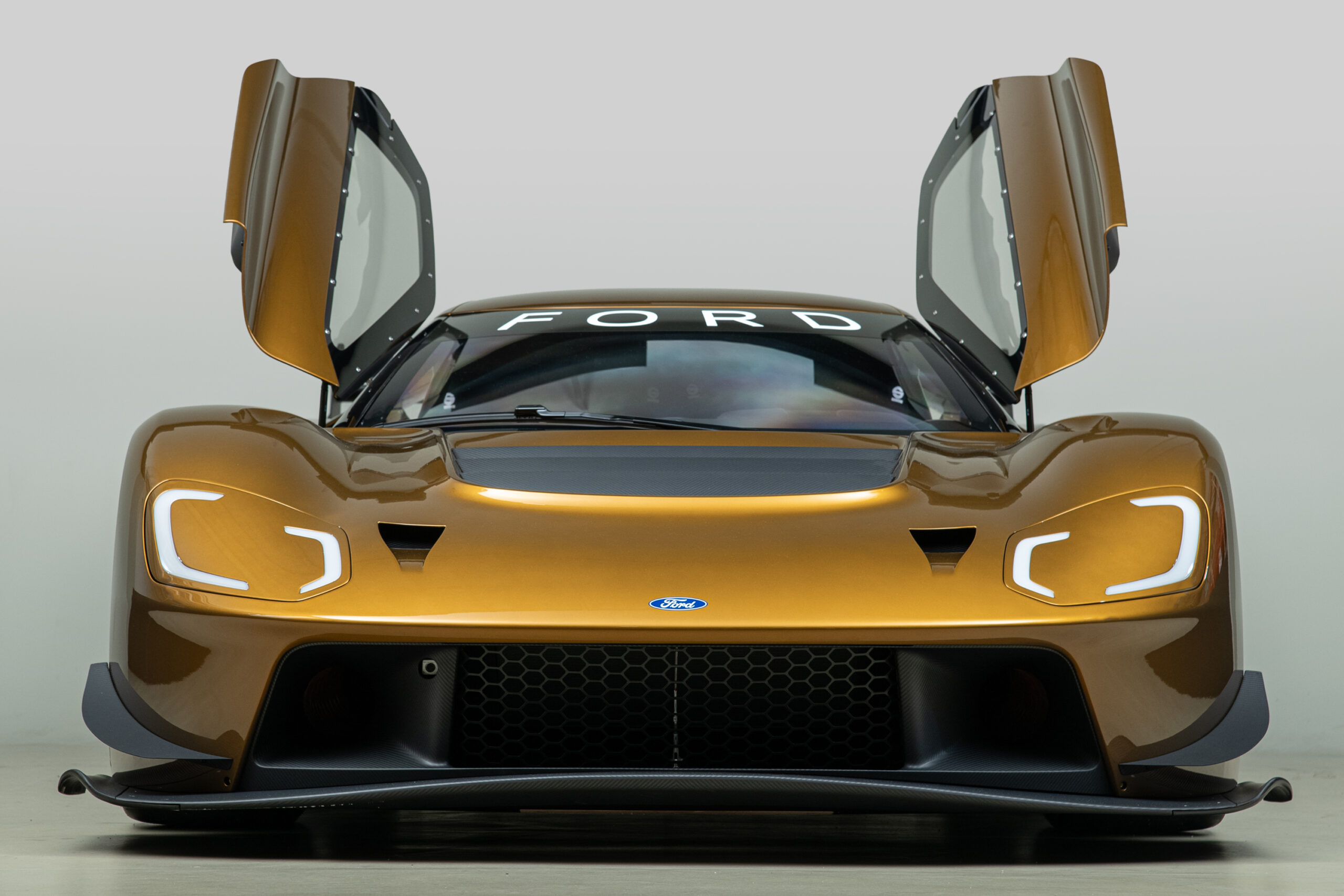 This 2025 Ford GT MK IV is chassis #39 of 67, and has been specified in a one-of-one color, Canepa Sunset Gold Metallic, and will be the only Ford GT MK IV in this particular specification.