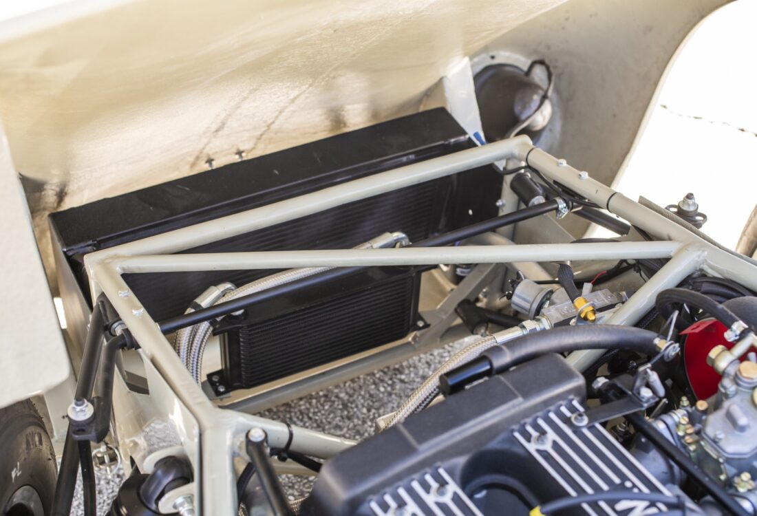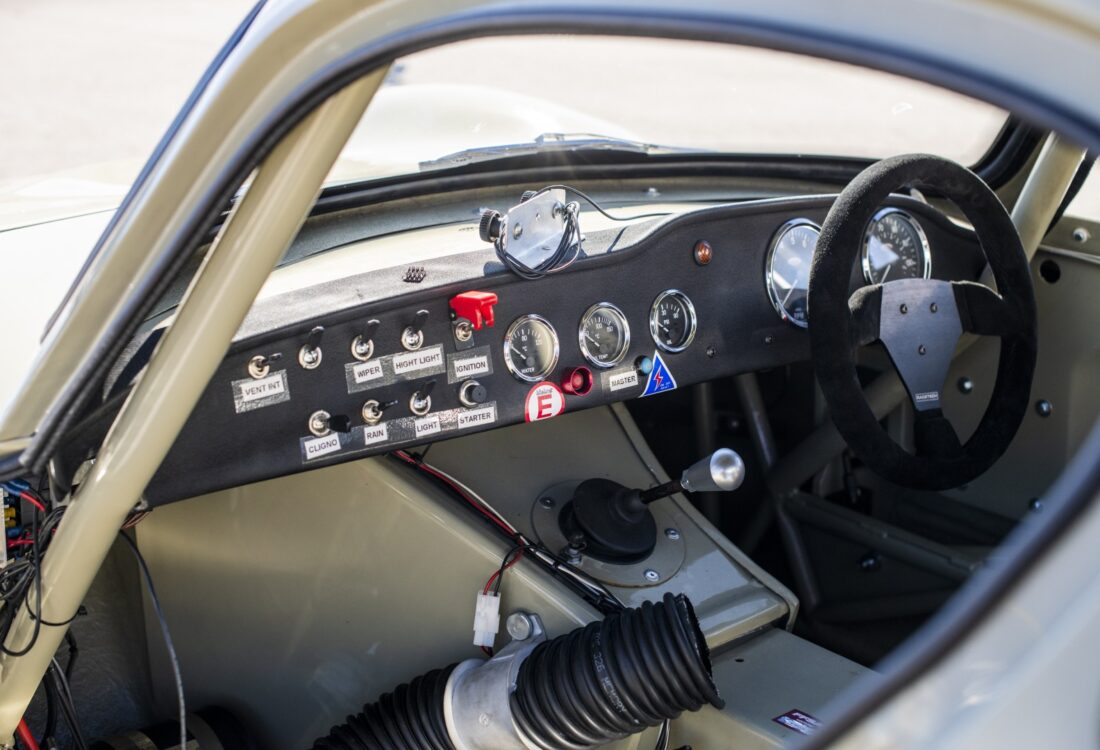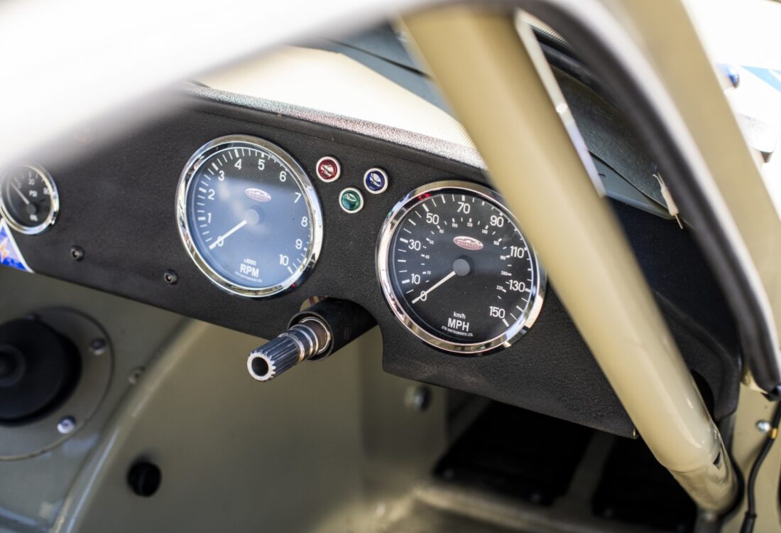 La voiture mise en vente a commencé sa carrière en tant que G4 de course originale et réputée, pilotée avec succès par Dave Randall au Royaume-Uni. Elle a fait la couverture de « The History of the Ginetta G4 » par Trevor Pynam, spécialiste de la marque, et est accompagnée d’un certificat d’authenticité. Elle a été convertie aux spécifications G4R par DARE en 2025 ; les travaux comprenaient une reconstruction complète, l’ajout d’une suspension arrière indépendante et l’installation d’un nouveau moteur Craig Beck Twincam de 190 ch.