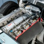 Après sa traversée de l’Atlantique et son retour en Europe, la trajectoire de cette Type E s’inscrit dans une tout autre dimension. Loin de rester un simple roadster de collection, elle est alors destinée à devenir une machine de course à part entière : plus affûtée, plus performante, plus radicale, et surtout immédiatement identifiable grâce à une livrée qui la distingue sans équivoque du reste du plateau.
