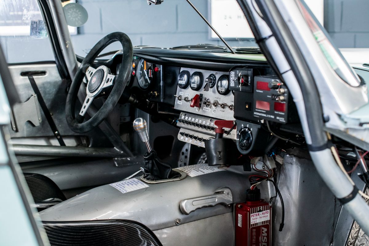 La voiture devient ainsi la première Jaguar Type E Roadster semi-lightweight développée par Matter Compétition, à Saint-Brice-sous-Forêt. Conformément au règlement, la monocoque demeure en acier, tandis que les éléments de carrosserie : capot, hard-top, coffre et portes sont réalisés en aluminium. Forte de son expertise, l’équipe de Matter optimise les renforts de structure, afin d’obtenir une rigidité parfaitement adaptée à un usage intensif en compétition.