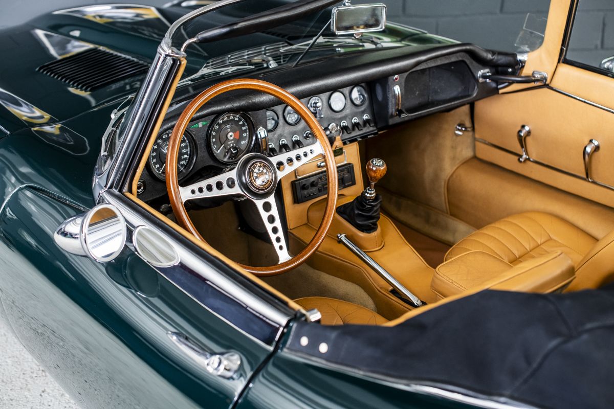 Nous retrouvons sa trace a la fin des années 1980 entre les mains de John D Warner à Ottawa dans Ontario non loin de Montreal. C’est en 1990 que l’actuel propriétaire s’en porte acquéreur et la rapatrie en France. Elle fera son bonheur au milieu de sa collection de Jaguar, l’accompagnant lors de nombreux rallye et en lui accordant un soin tout particulier comme le prouve l’ensemble des contrôles techniques et rapport d’expertise très réguliers du dossier. Son moteur a été restauré il y a environ 20.000km et la voiture présente des alignements et une patine qui ferait pâlir nombreuses auto récemment restaurée. Ce Roadster est un vrai plaisir à conduire. Si vous êtes à la recherche d’une E-Type utilisable au quotidien, qui a conservé toutes ses caractéristiques d’origine vous aurez du mal à trouver un meilleur exemple que celui-ci.