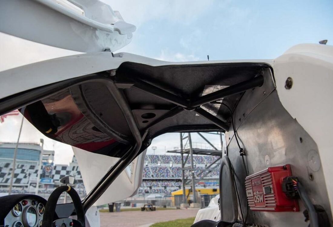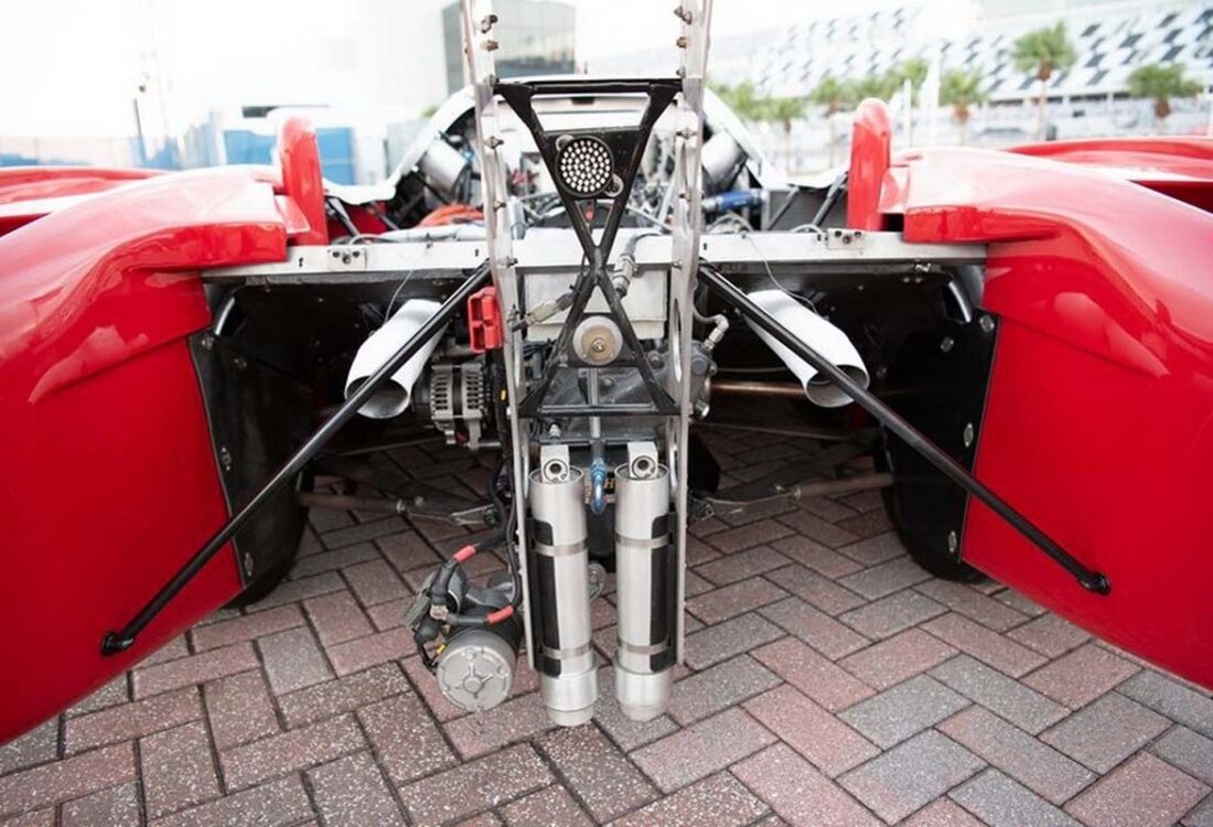 The refurbishment also included the overhaul of the Hewland VGC 5-speed manual transaxle, replacement of the fuel cell, AN hoses and fittings, and wiring harness, with the latter incorporating a MoTeC Power Distribution Module and data logging for the chassis and engine.