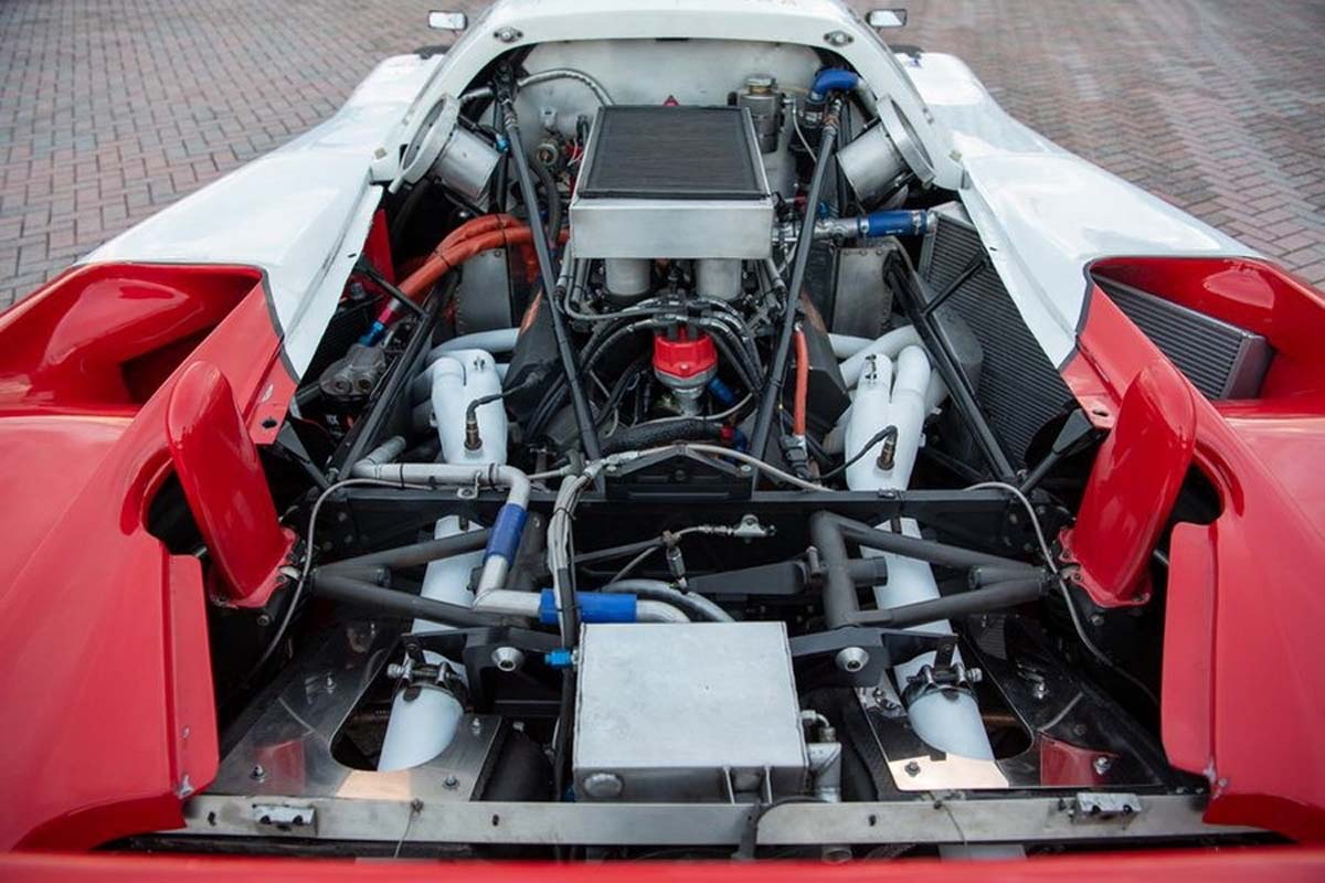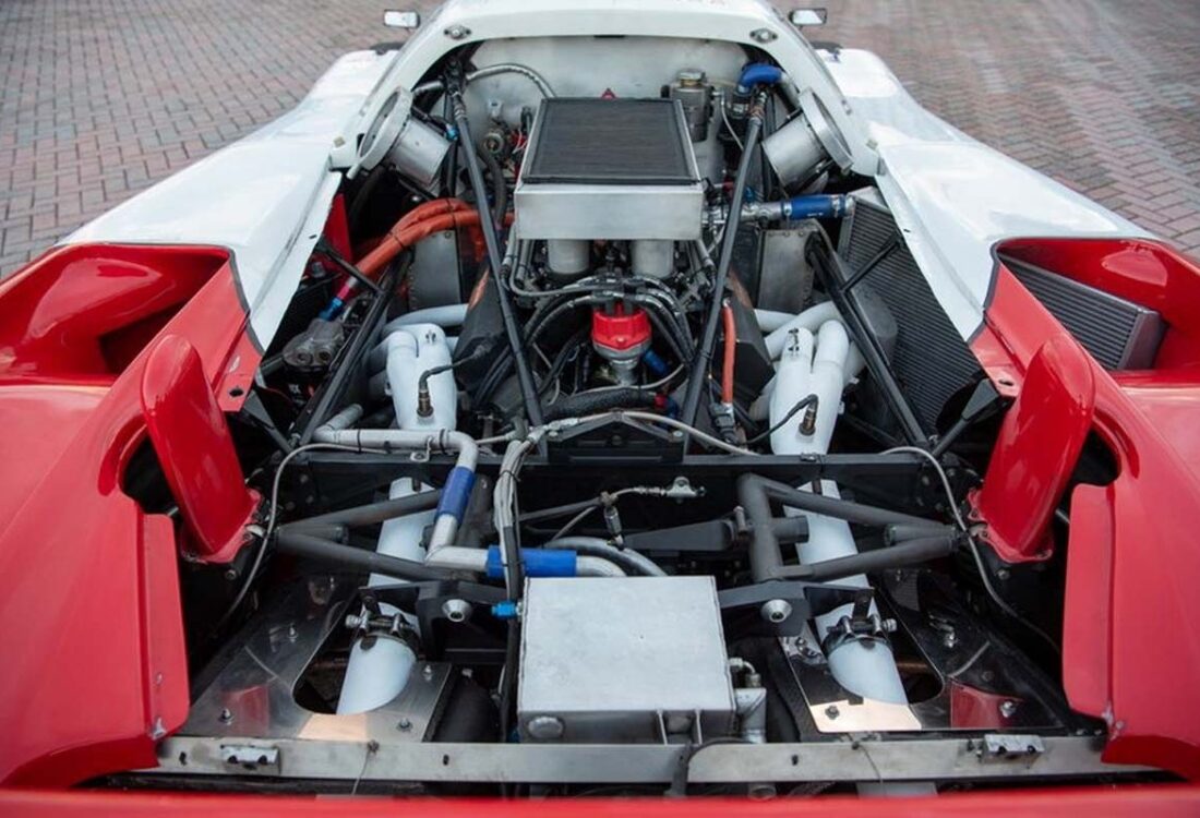 The cars of which only 7 were build – featured Kevlar bodywork similar to a Chevrolet Corvette C4 at the front, with a long pontoon-style tail featuring Corvette taillights. Suspension incorporates coil over shock absorbers at each corner, with the front units mounted inboard as part of a pushrod setup. The car was also equipped with quick jacks.