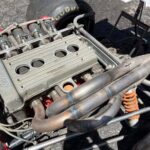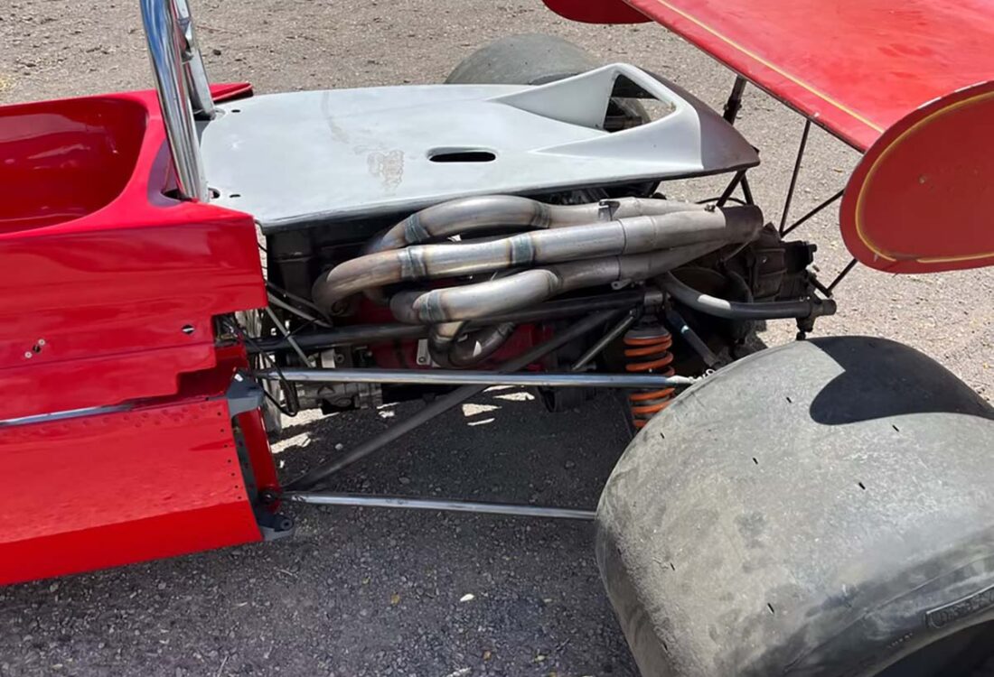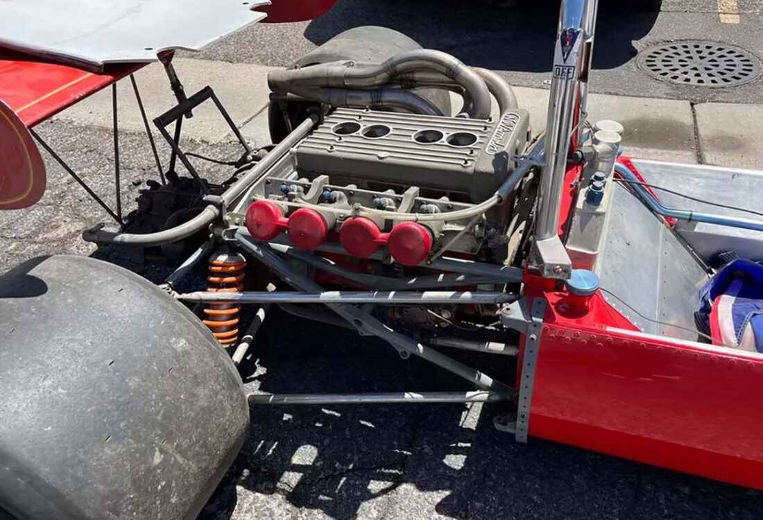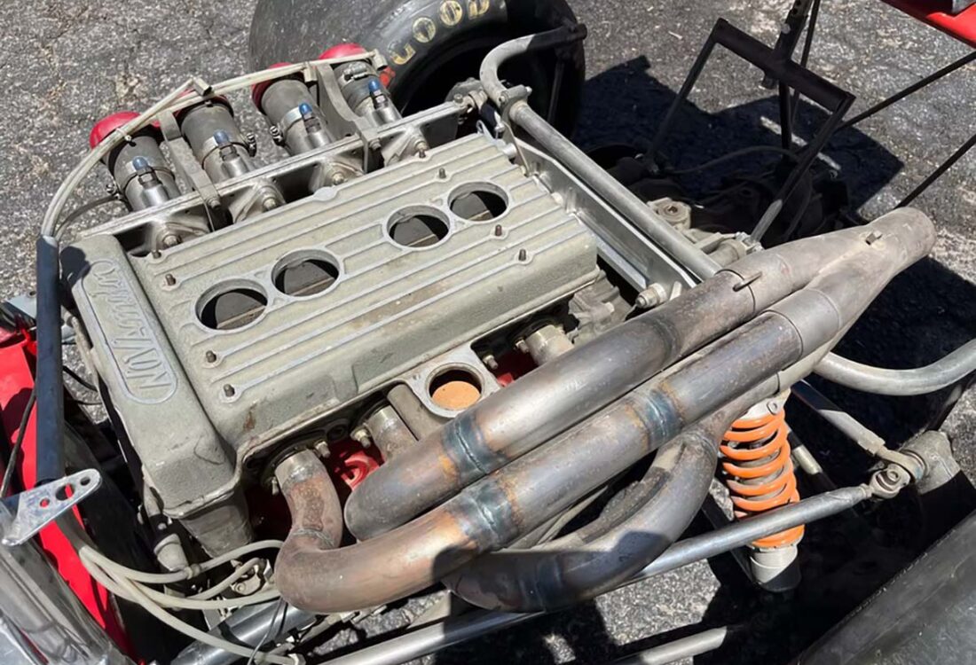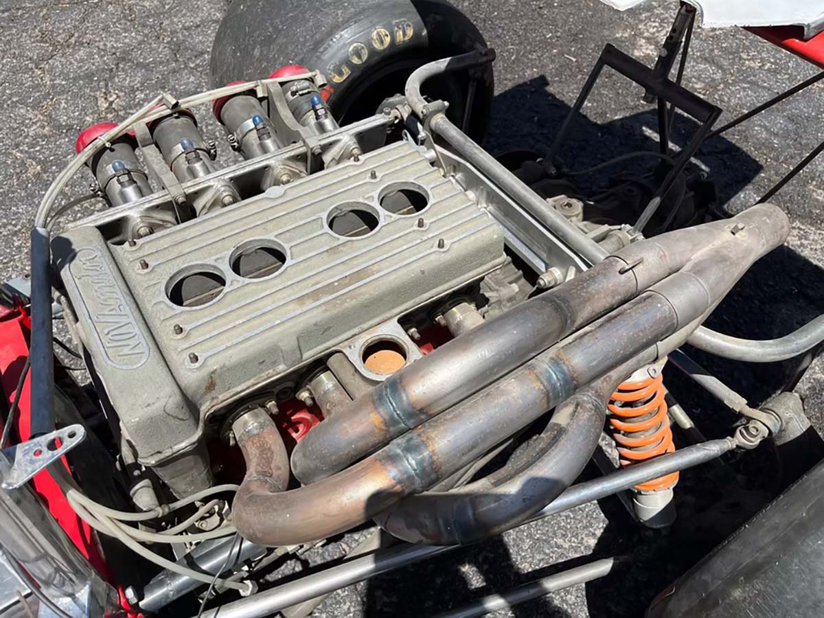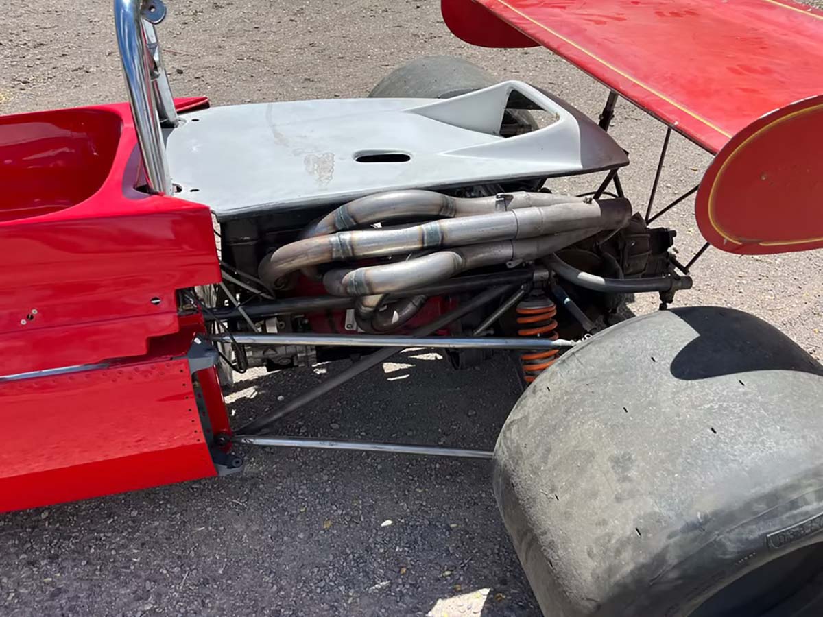 This March 722 Formula Atlantic is powered with a Cosworth BDA engine. It uses the Hewland FT200 gearbox.