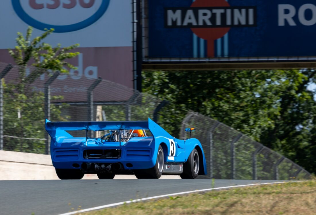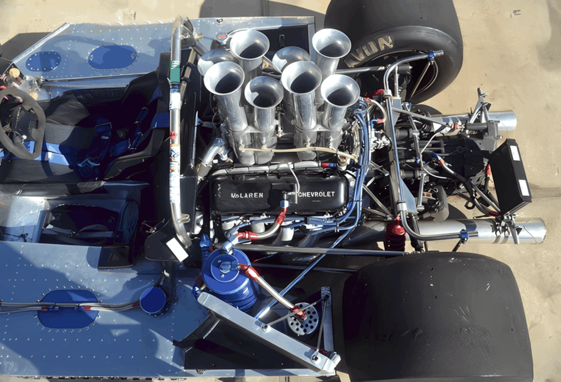 La McLaren M8F, conçue par Gordon Coppuck et l’équipe McLaren, représentait le summum de la course Can-Am au début des années 1970. Construite pour la saison 1971, la M8F était une évolution ciblée de la série M8 à succès, équipée d’un moteur Chevrolet V8 de 8,1 litres (puis 8,3 litres) développant plus de 700 chevaux. Son châssis monocoque en aluminium, son empattement allongé et son aérodynamisme raffiné, notamment ses défenses latérales sur toute la longueur, lui conféraient à la fois stabilité et vitesse brute. La M8F a dominé le championnat Can-Am 1971, avec des victoires remportées par Peter Revson et Denny Hulme, puis François Cevert qui a décroché la dernière victoire Can-Am pour la série M8 en 1972. Les ingénieurs et les pilotes ont salué la M8F pour son équilibre entre puissance et maniabilité, consolidant ainsi sa réputation comme l’une des machines les plus redoutables de l’histoire du Can-Am.