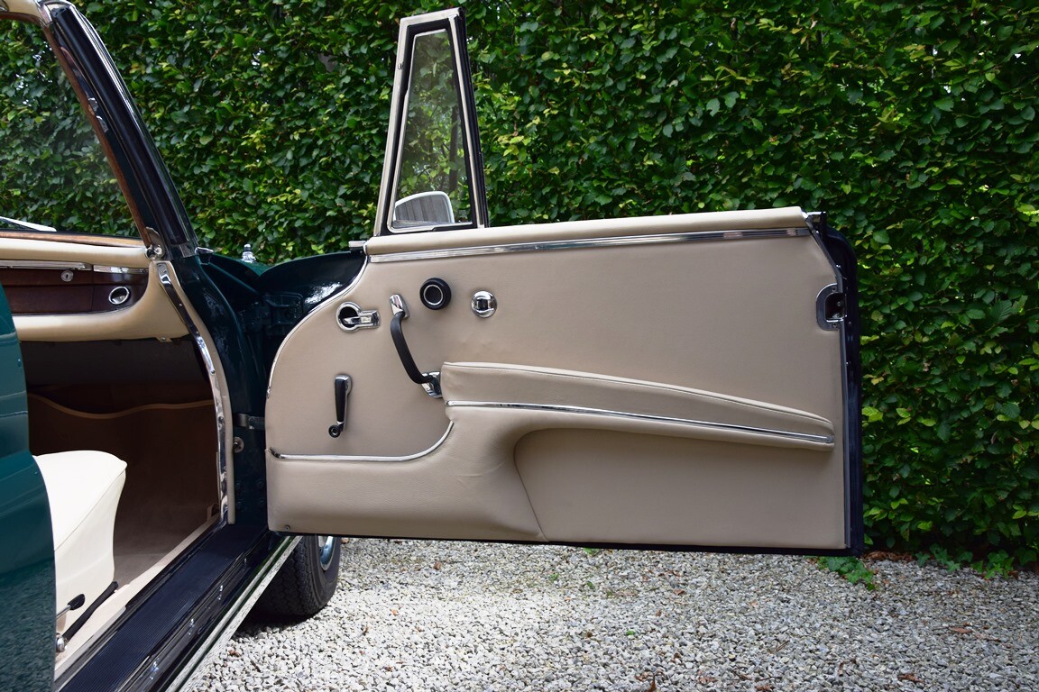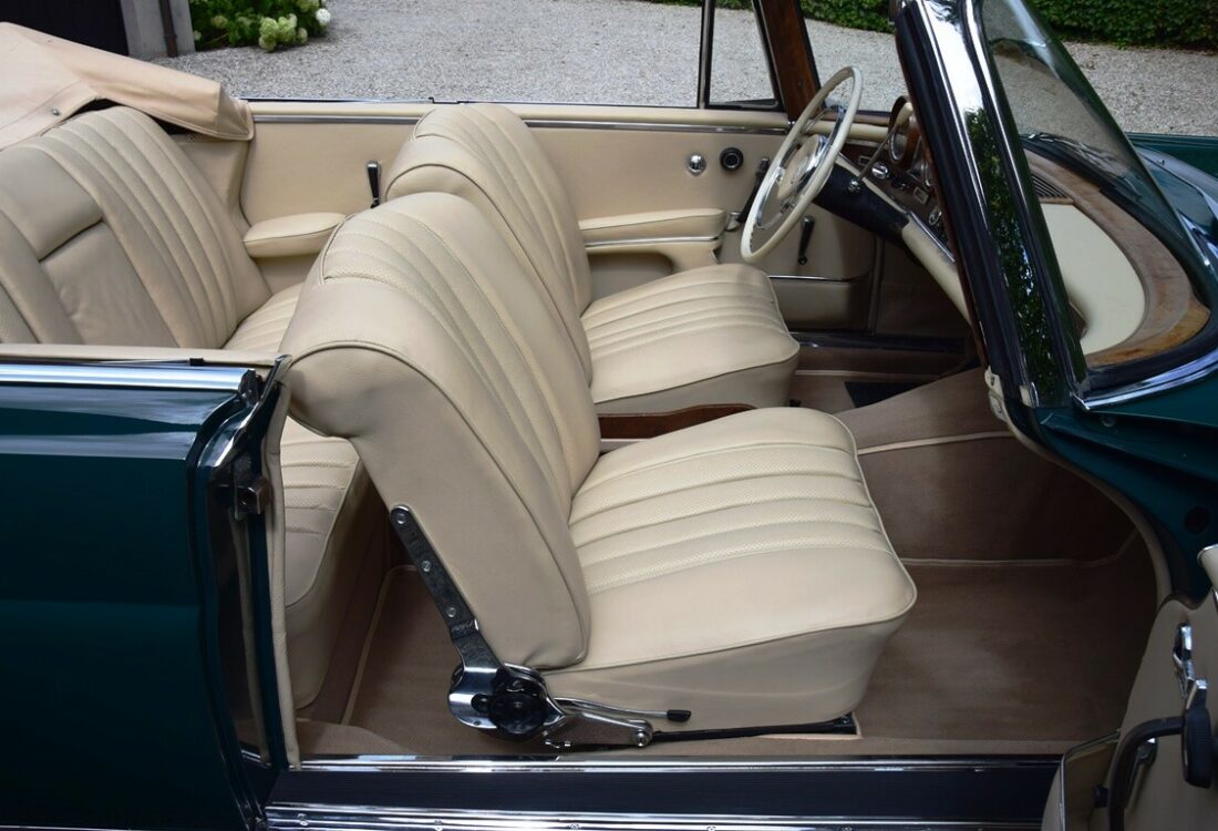Cette Mercedes est toujours dans un état fantastique, finie dans la combinaison de couleurs d’origine Dunkelgrün avec un intérieur beige et une belle capote marron foncé. La voiture roule comme un rêve, et nous l’avons appréciée lors d’un aller-retour de 700 km à travers la France rurale sans un seul problème. Le document original d’exportation vers New York, les immatriculations française et espagnole au nom de Pat (Pasquale) di Cicco et même le « Internationaler Zulassungsschein » allemand de 1963 avant son départ pour New York sont toujours avec la voiture.