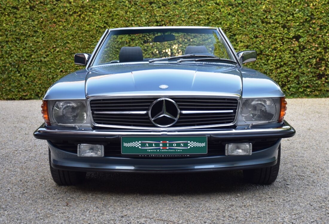 La Mercedes 560 SL était le modèle haut de gamme de la série R107. Ce modèle a été produit de 1971 à 1989, avant d’être remplacé par la R129 après une carrière très réussie. La 560 SL a été introduite en 1986 et n’était disponible que sur les marchés américain, japonais et australien. Les versions américaines avaient des performances limitées, des pare-chocs énormes et un troisième feu de freinage, tandis que les exemplaires japonais et australiens étaient construits selon les spécifications européennes (LHD pour le Japon, RHD pour l’Australie).