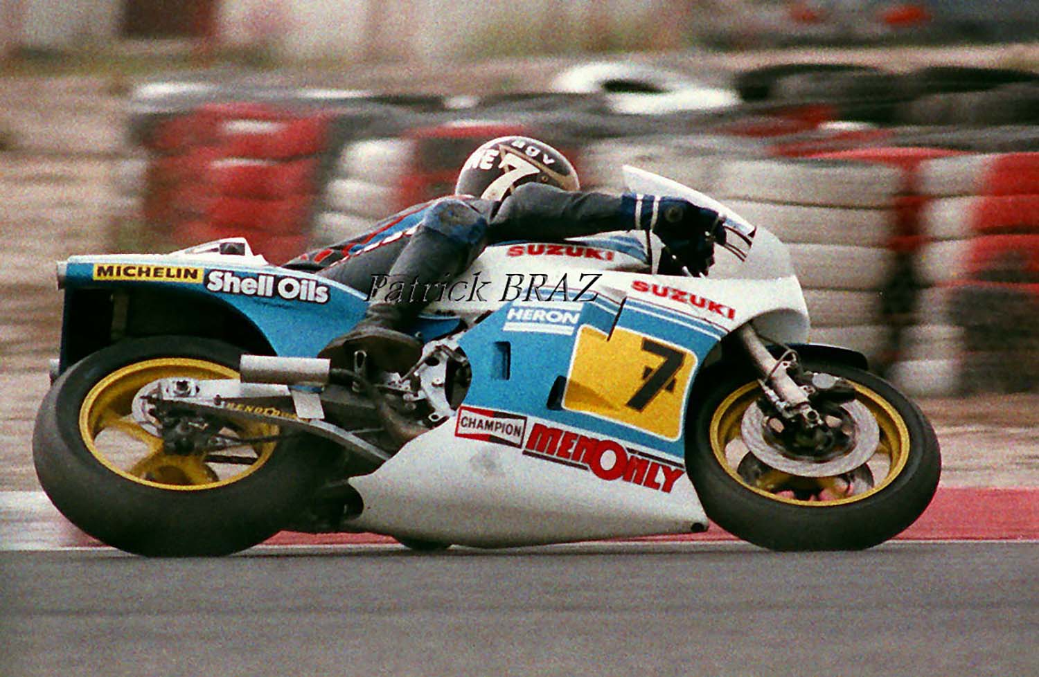 1982 est aussi synonyme de RG500. Franco Uncini vient à bout de Roberts et prend une dernière couronne mondiale pour la moto si mythique.