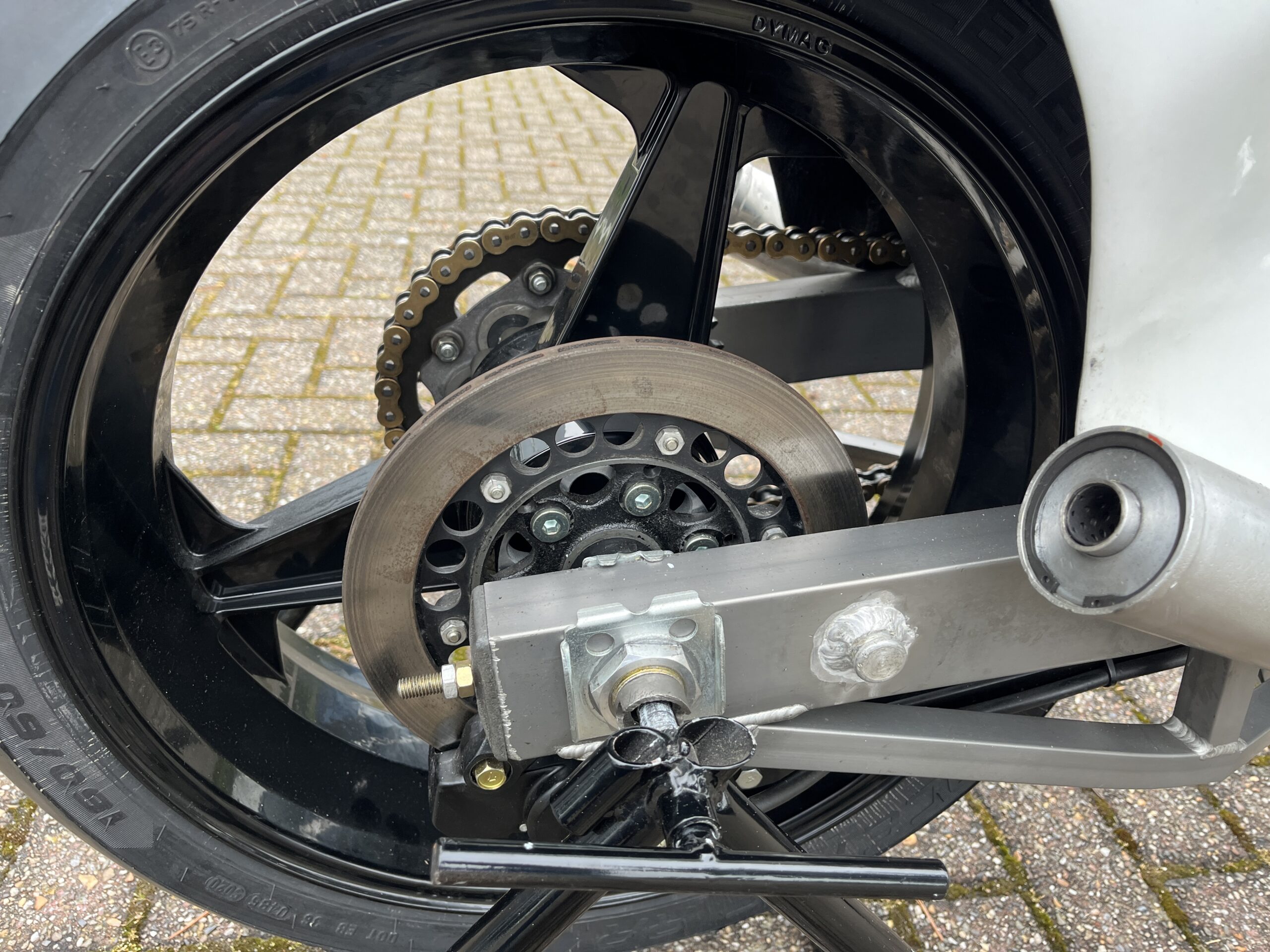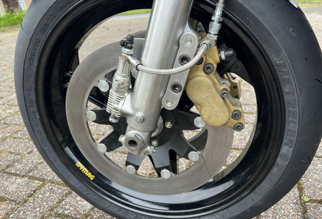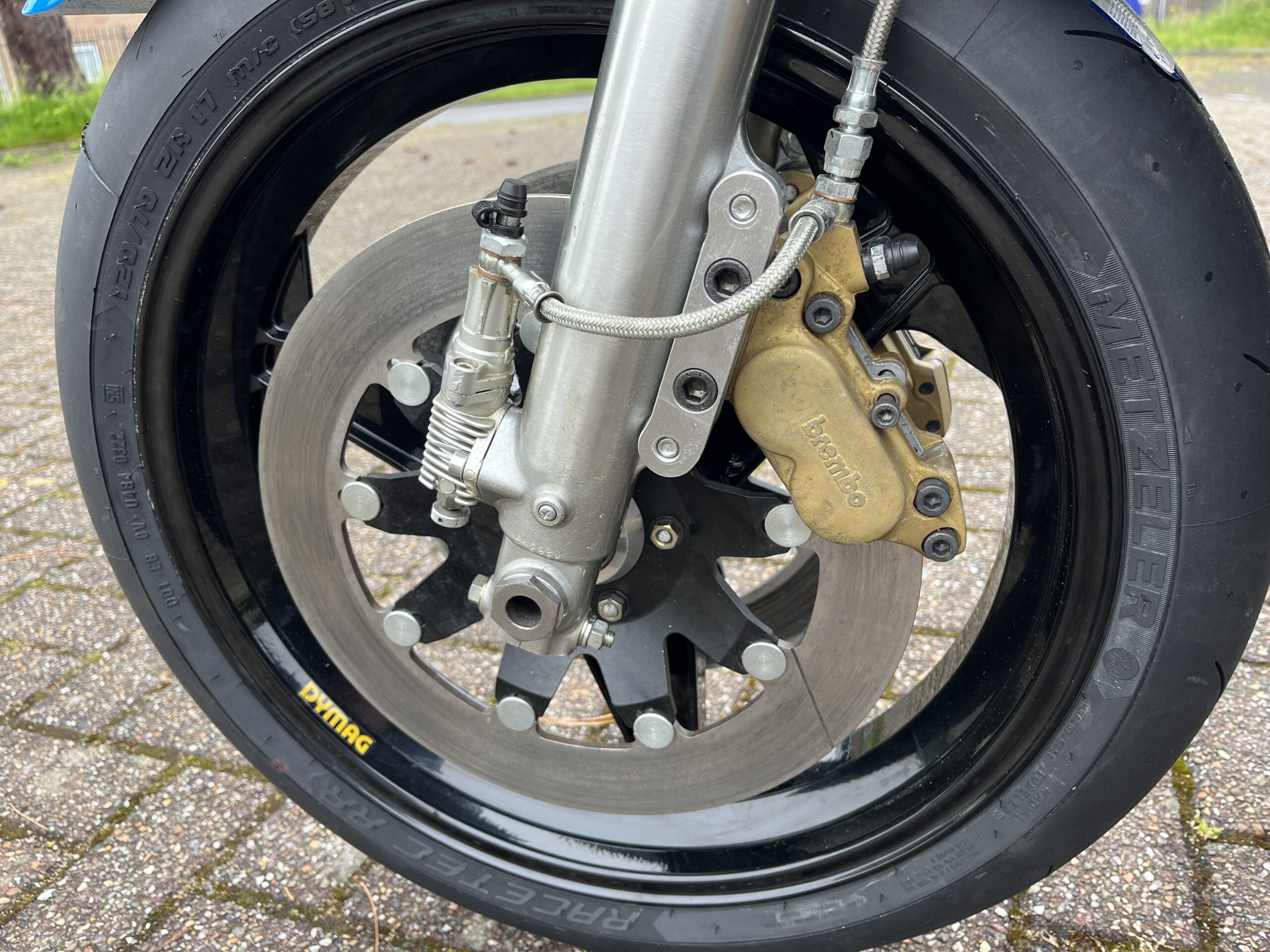 – Nouvelles jantes Dymag 17 pouces avec pneus Metzler Racetec rr neufs (les jantes Dymag 18 pouces, toujours en parfait état, sont fournies avec la moto).