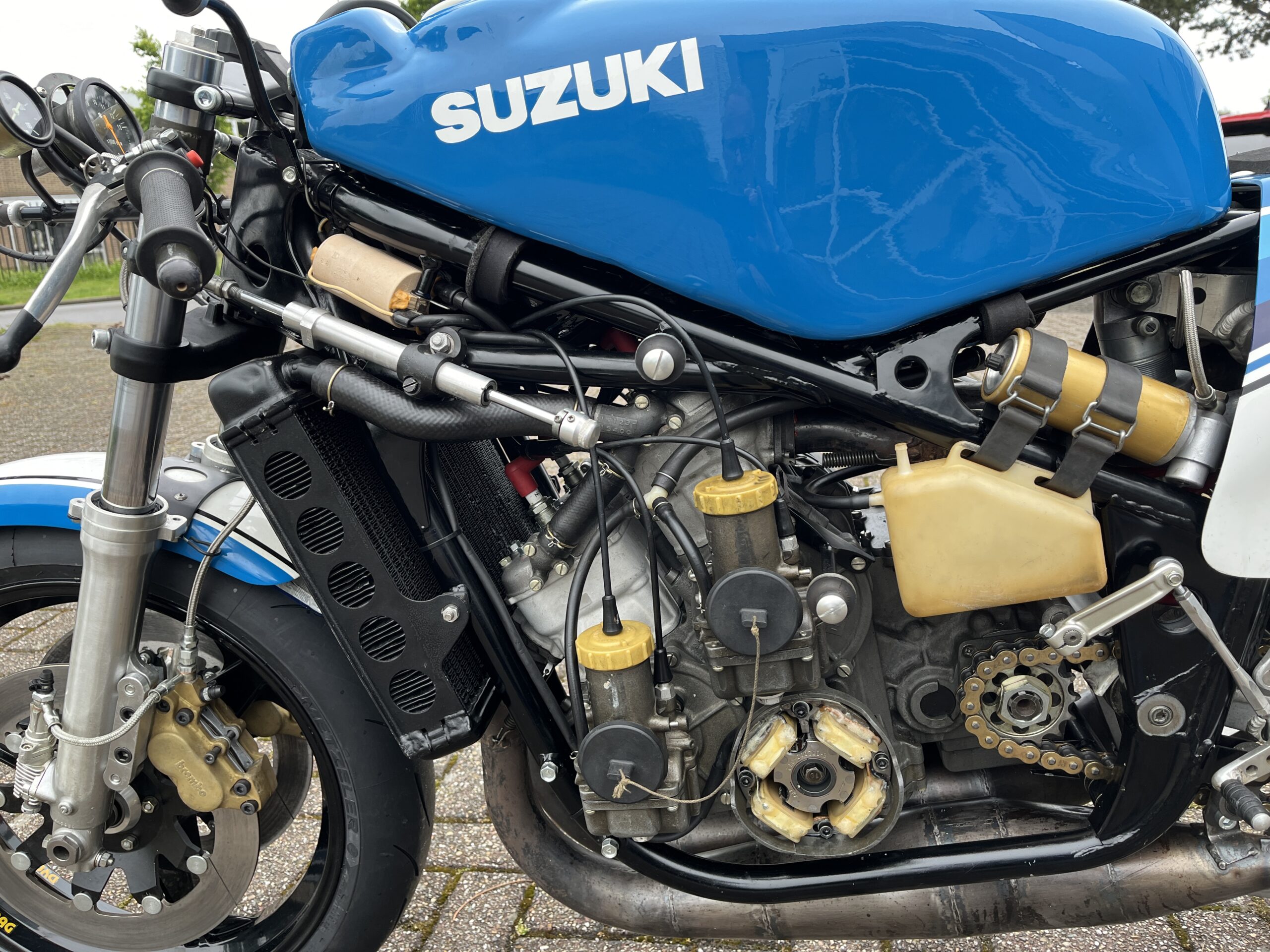 Conçue par seulement quatre ingénieurs, ce prototype utilise un moteur particulier, un quatre cylindres en carré deux temps. Cette innovation, accompagnée de distributeurs rotatifs permets à Suzuki de se démarquer très rapidement dans le monde des Grands Prix.