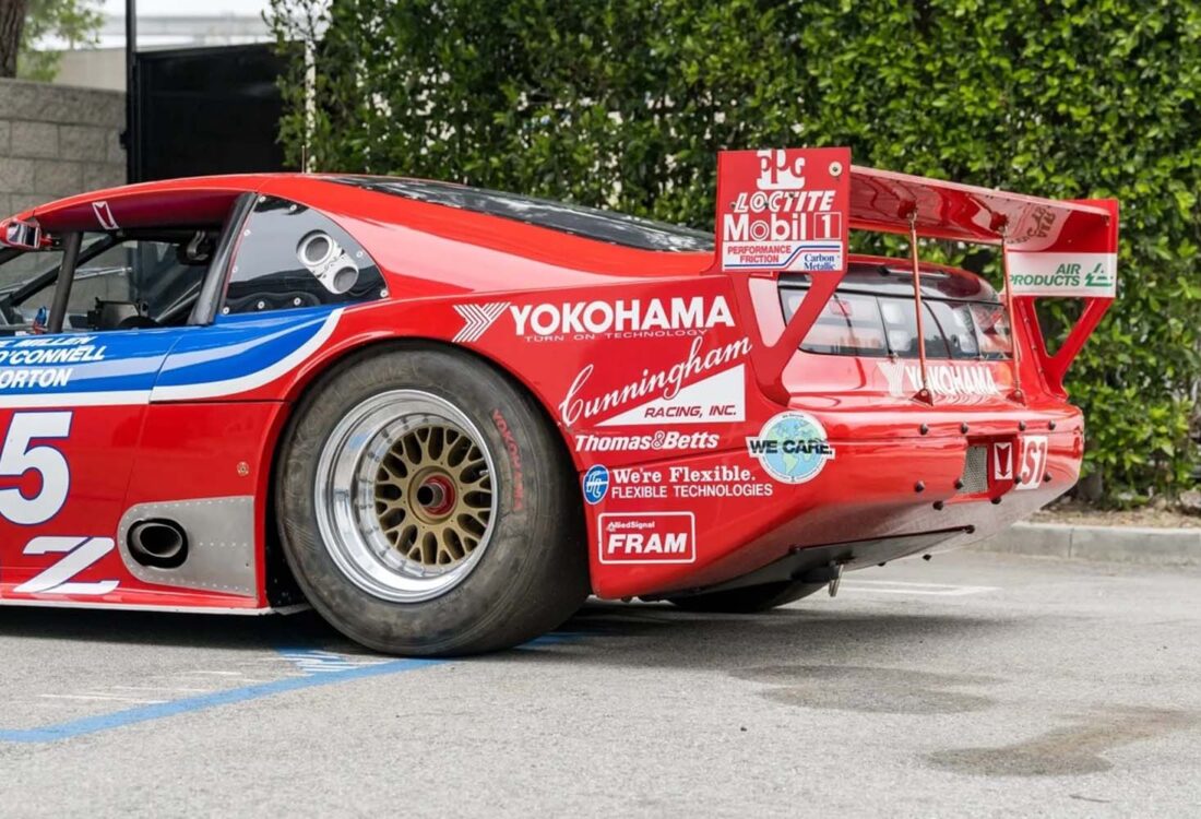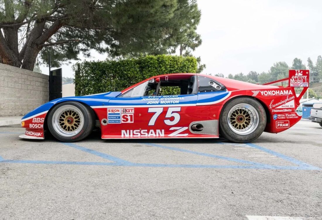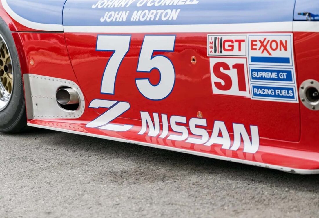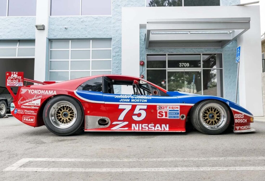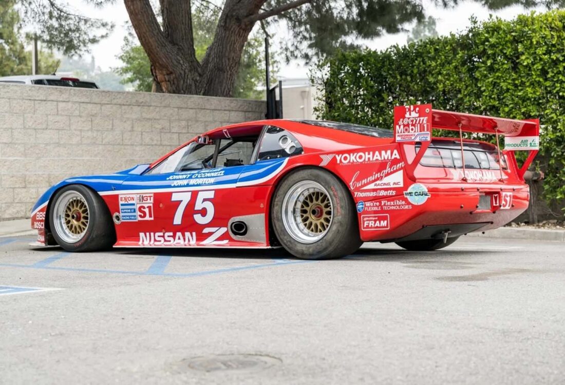 Cette Nissan 300ZX de 1994, châssis n° 008, est l’une des huit Z32 de course officielles, construites par Clayton Cunningham Racing pour le championnat IMSA GTO. Afin de se conformer aux nouvelles réglementations IMSA, son moteur V6 turbocompressé d’origine a été remplacé par un V8 atmosphérique de 4,5 litres, conforme à la catégorie GTS-1. Dans cette configuration, elle a remporté les 12 Heures de Sebring 1995, pilotée par Steve Millen, Johnny O’Connell et John Morton. En 1994, Johnny O’Connell s’est imposé à Laguna Seca en catégorie IMSA GTO.