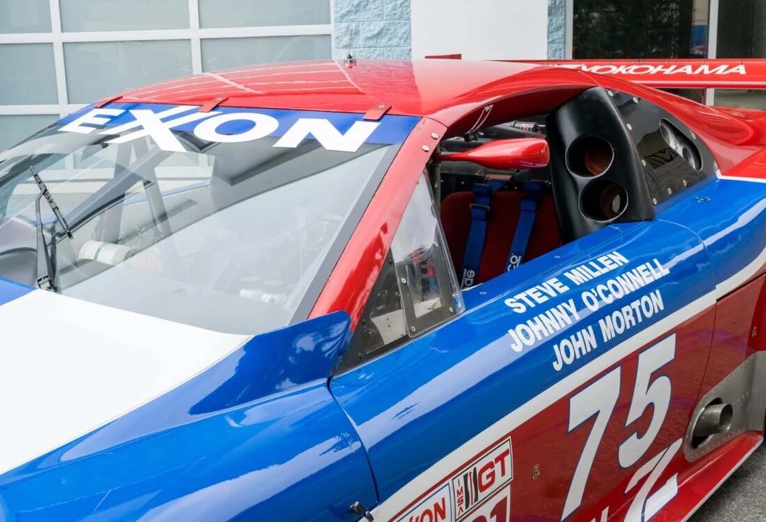 This 1994 Nissan 300ZX is chassis 008 one of eight factory-supported Z32 race cars constructed by Clayton Cunningham Racing for IMSA GTO competition. To meet IMSA rules changes, this car was converted from the GTO class turbocharged V-6 to the GTS-1 4.5 Liter normally aspirated V-8 engine. In this configuration it won the 1995 12Hrs. of Sebring with Steve Millen, Johnny O’Connell and John Morton driving. In 1994’s IMSA GTO class Johnny O’Connell scored a win at Laguna Seca.