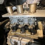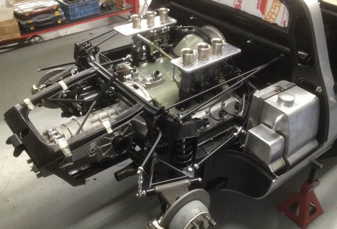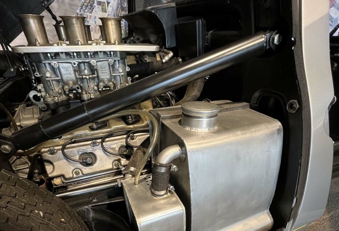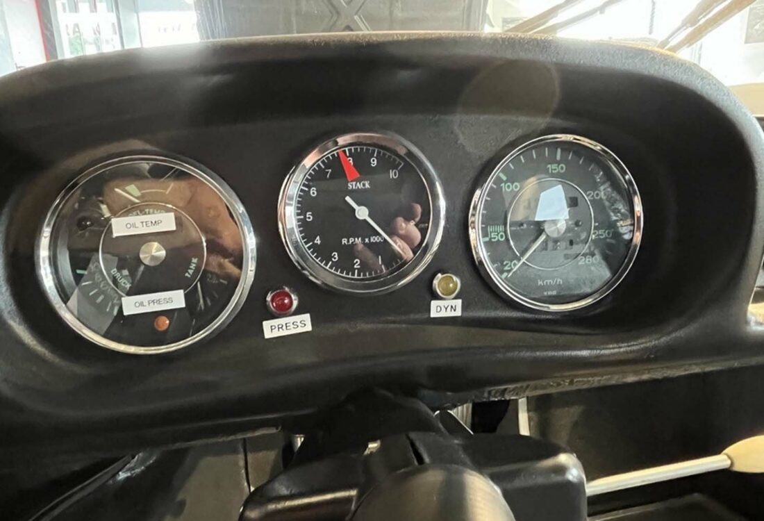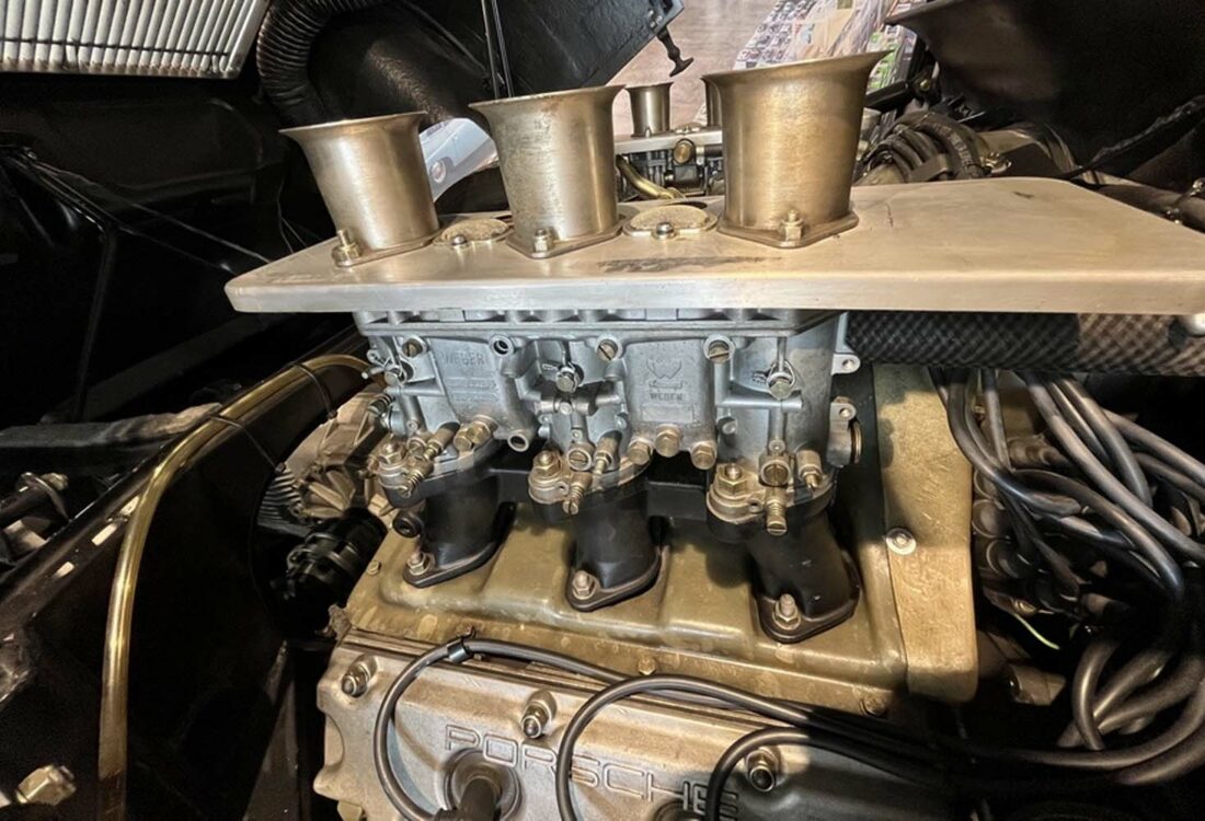 The 2.0 liter flat 6 cylinder engine has a 901 casing and is full 906 Carrera-spec with dual ignition on original IDA46 triple Weber Carburettors, delivering around 230 bhp.