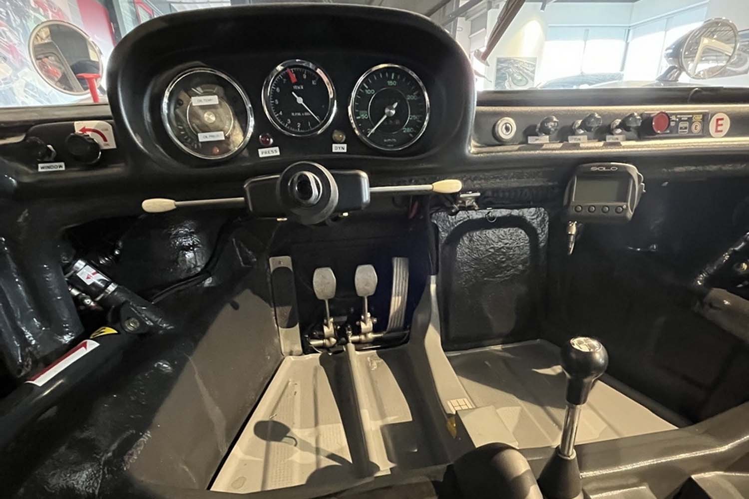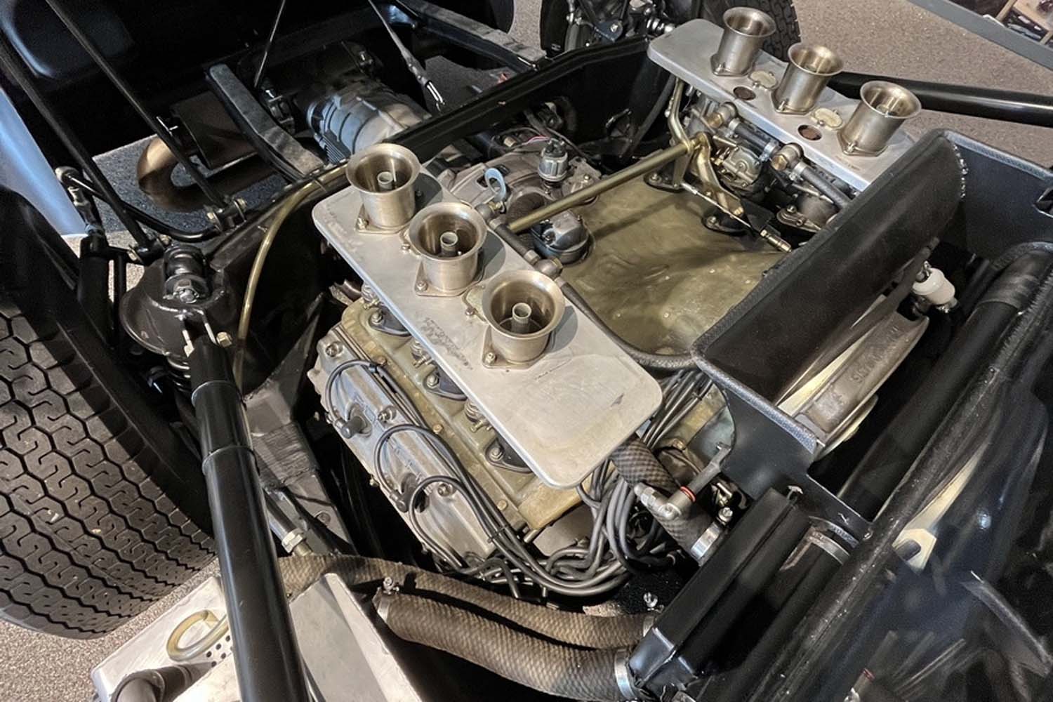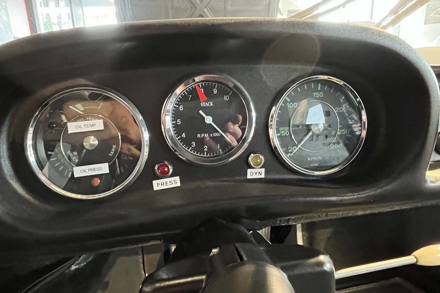 The 2.0 liter flat 6 cylinder engine has a 901 casing and is full 906 Carrera-spec with dual ignition on original IDA46 triple Weber Carburettors, delivering around 230 bhp.