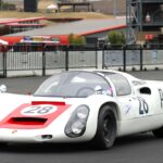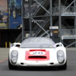 Le département compétition de Porsche a construit 29 prototypes 910 Sport à châssis en acier et moteur 6 cylindres de 2 litres. Extrêmement légers, ils pesaient moins de 590 kg. Les modèles d’usine étaient équipés d’un moteur 8 cylindres de 2,2 litres, tandis que les modèles destinés aux clients disposaient d’un moteur 6 cylindres de 2 litres. La 910 a remporté de nombreuses victoires de catégorie au prestigieux Championnat du Monde des Marques. Aujourd’hui, elle est éligible pour les plus grandes courses historiques internationales, telles que les 24 Heures du Mans, les courses d’endurance et le RMMR aux États-Unis.