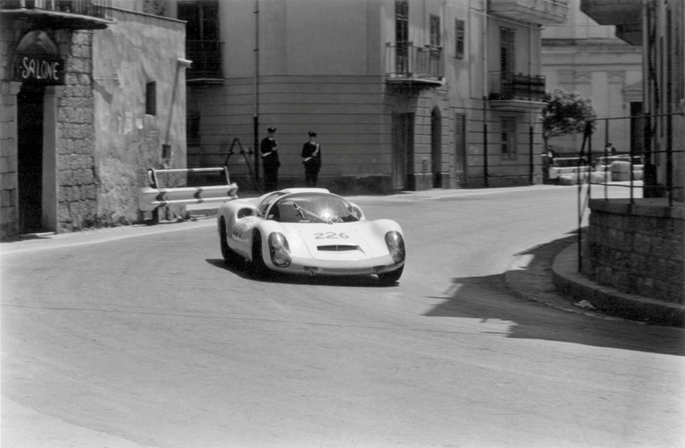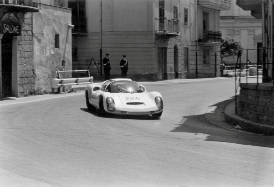 Les archives de l’usine Porsche indiquent que cette voiture a été engagée par le département compétition de Porsche, équipée d’un moteur V8 de 2,2 litres à injection, à la Targa Florio le 14 mai 1967, pilotée par Gerhard Mitter et Colin Davis. Le 23 juillet 1967, elle a participé aux 1 000 km du Mugello, toujours avec Gerhard Mitter et Udo Schutz au volant, et a remporté la victoire.
