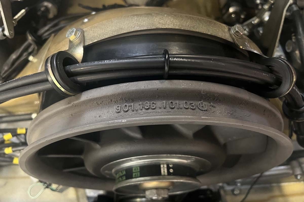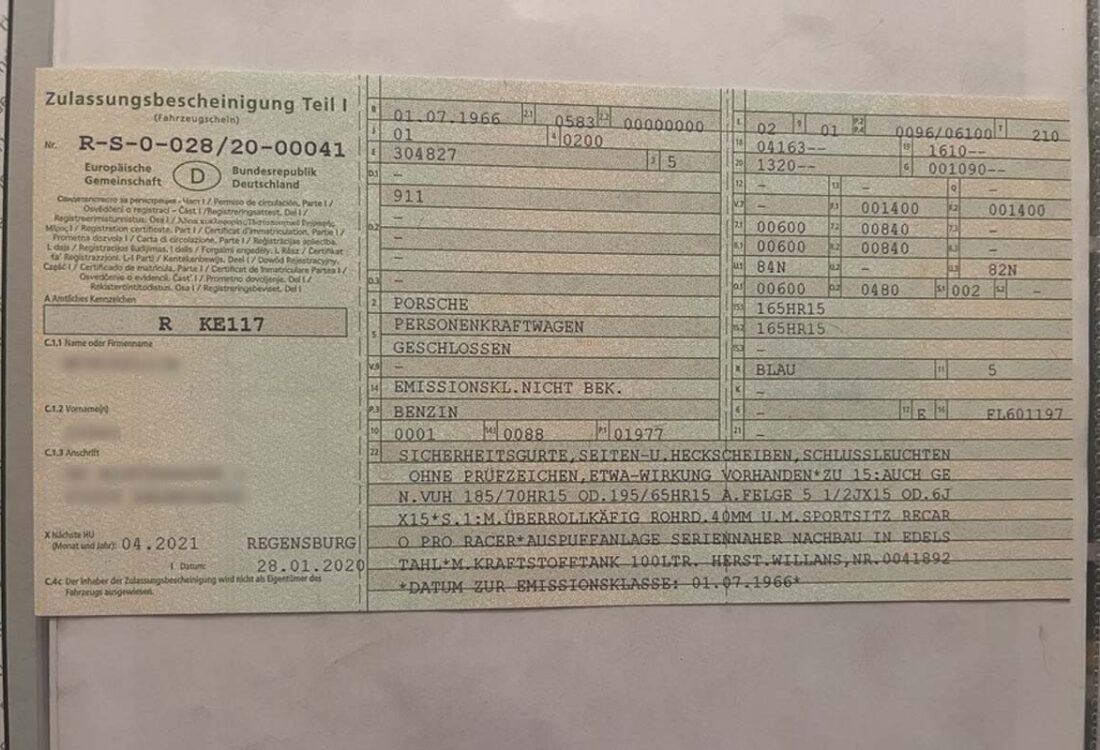 Conformément au certificat d’authenticité Porsche joint, le châssis n° 304827, la voiture présentée ici, a été assemblée à l’usine Porsche de Zuffenhausen le 9 mars 1966 et peinte en gris ardoise (code 6401).