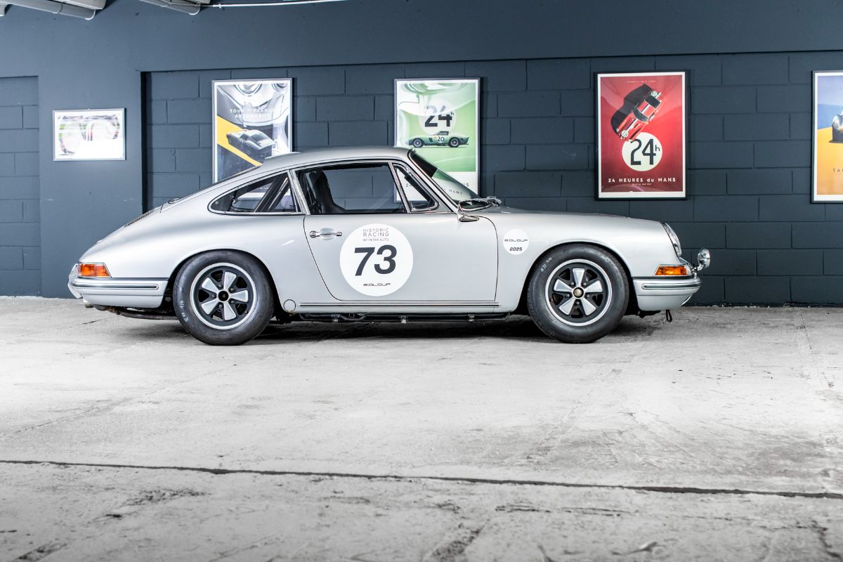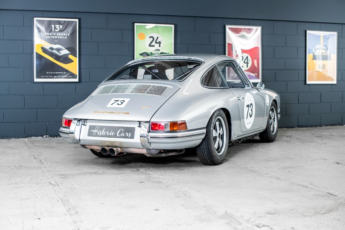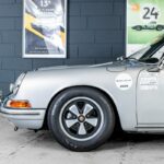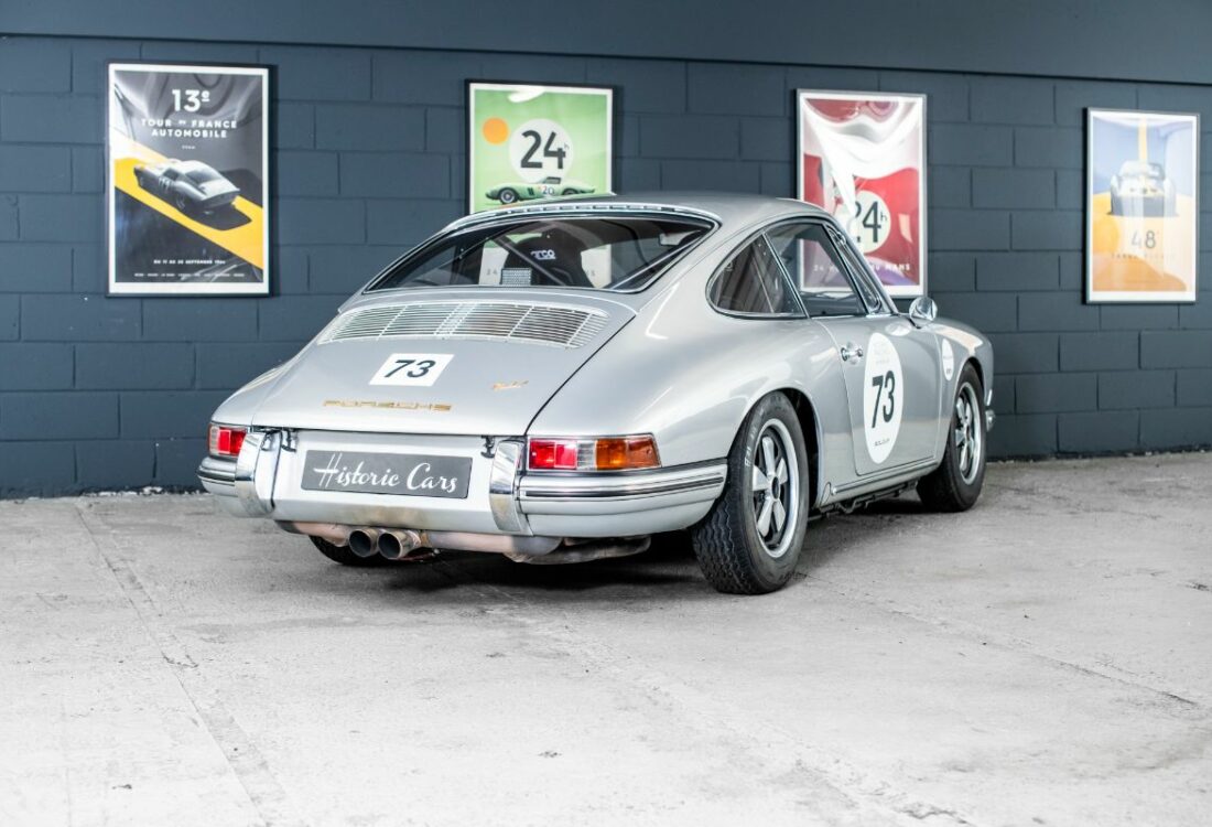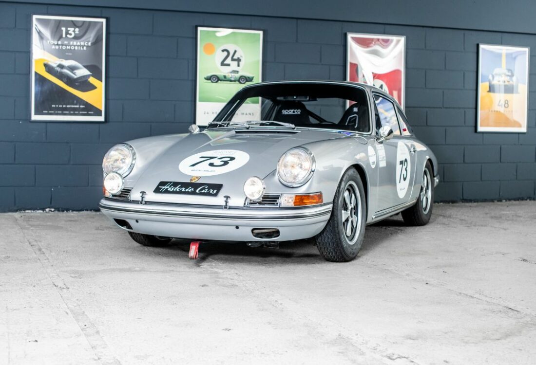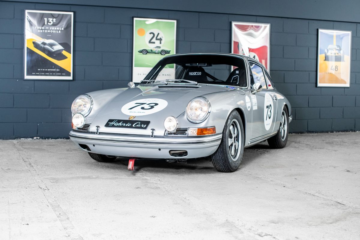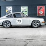Peu de sportives se sont montrées aussi polyvalentes que l’éternelle 911 de Porsche, un modèle qui, dans les 50 dernières années, s’est montré capable d’être un véritable grand tourisme aussi bien qu’une voiture de rallye ou de circuit. « Classique moderne » s’il en est, la 911 avait été dévoilée au Salon de Francfort 1963 sous le nom de 901, mais, peu après le début de sa mise en production, en 1964, était devenue 911, à la suite d’une plainte de Peugeot qui avait déposé l’utilisation du zéro central pour ses modèles. L’architecture à moteur en porte-à-faux arrière de sa devancière 356 était reconduite, mais la 911 faisait appel à une structure monocoque pour sa construction et abandonnait la suspension d’origine Volkswagen de la 356 en faveur d’un système McPherson à jambe de suspension et à bras longitudinal tiré, plus moderne. Dans sa première mouture, le six cylindres à plat Porsche à simple arbre à cames en tête, refroidi par air, de 1991 cm3 développait 130 ch.