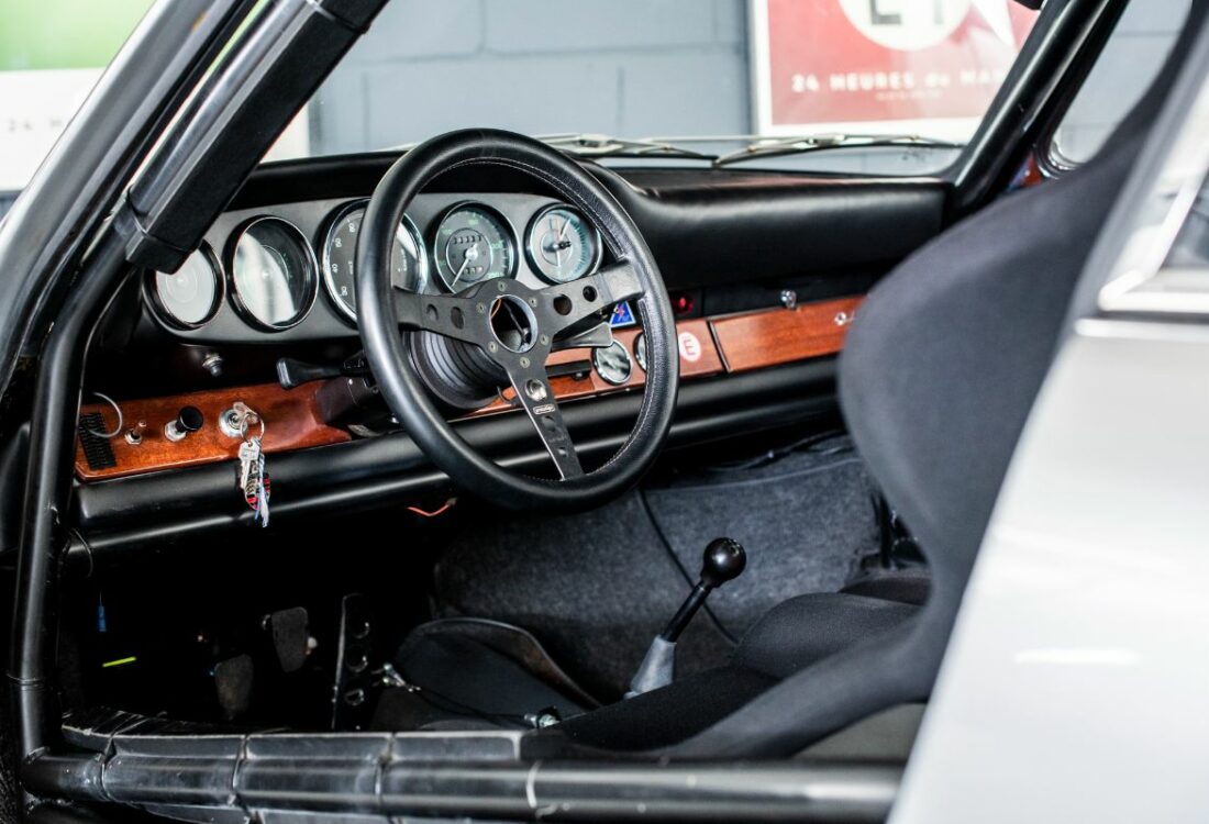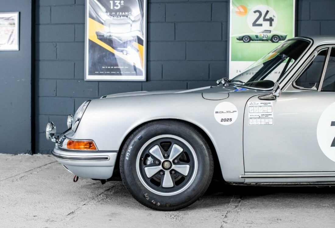 La voiture est aujourd’hui prête à courir avec la sécurité à jour et son PTH FIA. Elle sera livrée avec toutes ses pièces d’origine déposées lors de la préparation, de deux jeux de jantes supplémentaires, d’un beau dossier confirmant que l’entretien de la voiture n’a fait l’objet d’aucune restriction de dépenses, et de toutes les photos de sa reconstruction coque a nu. C’est une opportunité rare d’acquérir une superbe Porsche 911 de course de 1965 ! Eligible au Tour Auto, au Mans Classic au Modena aux 6H de Spa… « to name a few » et surtout au très relevé championnat monotype 2.0L Cup.