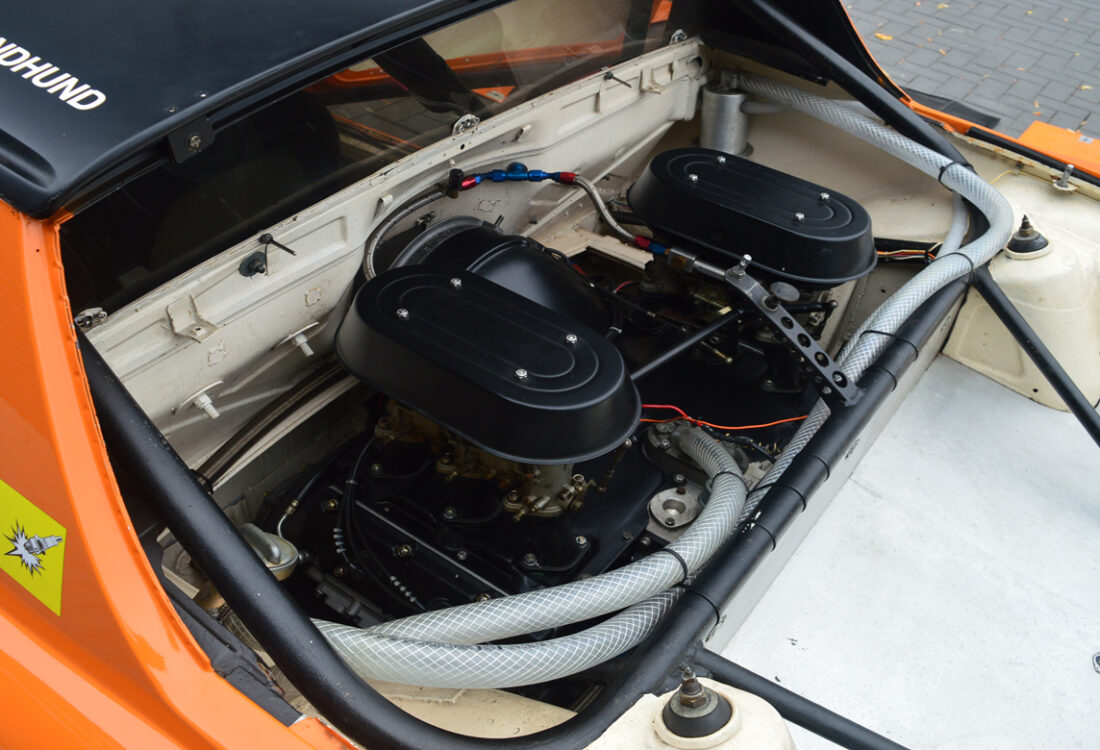 Bloc réalésé en 2,7 L. Volant moteur allégé. Bielles Carillo, arbres de 906, Webers 46mm, kit d’embrayage Sachs, transmission 901….