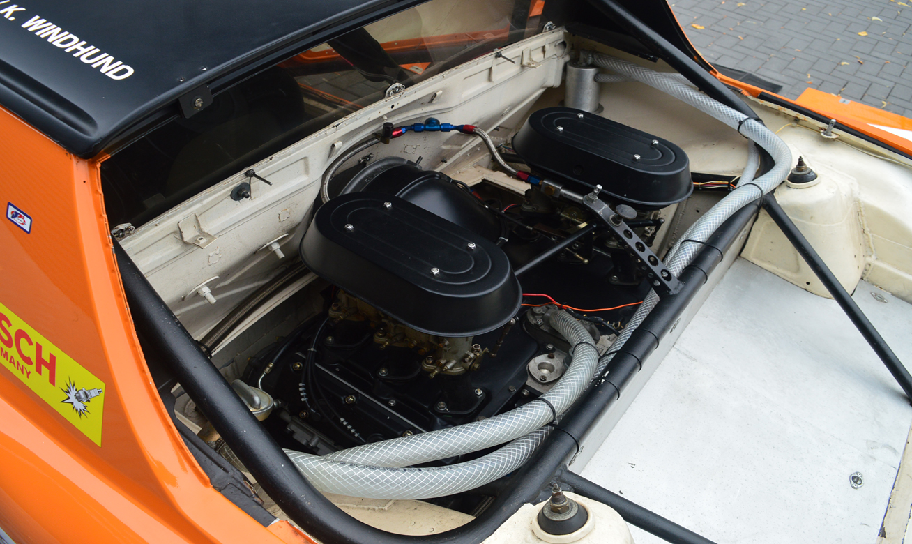 Bloc réalésé en 2,7 L. Volant moteur allégé. Bielles Carillo, arbres de 906, Webers 46mm, kit d’embrayage Sachs, transmission 901….