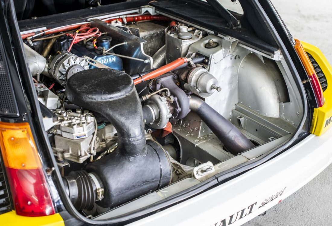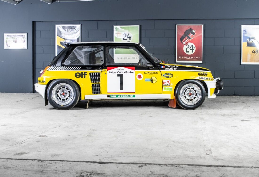 Véritable Groupe 4 usine, cette Renault 5 Turbo est directement issue du service compétition de Renault Sport et conserve les caractéristiques propres aux voitures officielles de l’époque. Elle se distingue notamment par son moteur Renault Sport développant environ 260 à 270 chevaux, son système de lubrification à carter sec, son échangeur air/eau Chausson, son turbocompresseur spécifique, ses suspensions De Carbon réglables et sa caisse renforcée Matter. À son retour du Bandama, la voiture est conservée par Renault Sport avant d’être offerte en 1984 à Jean Ragnotti par Patrick Landon, alors responsable du programme rallye.