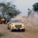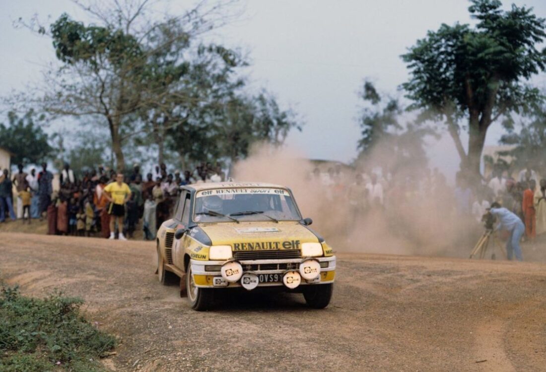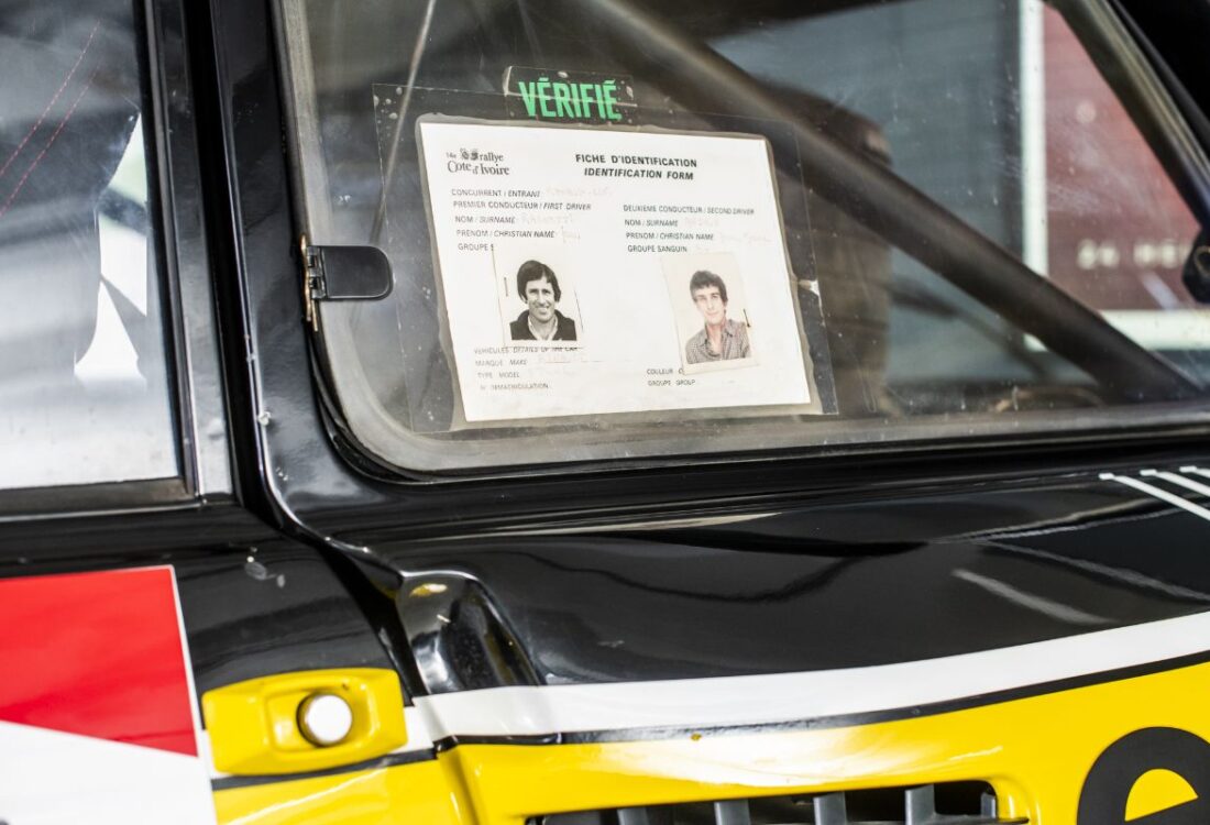 Pour la saison 1982, Renault engage ses R5 Turbo sur certaines manches du Championnat du Monde des Rallyes, dont le redoutable Rallye de Côte d’Ivoire, plus connu sous le nom de Bandama. Disputée sur des milliers de kilomètres de pistes africaines particulièrement éprouvantes, cette épreuve compte parmi les plus exigeantes de son époque. L’exemplaire présenté est confié à Jean Ragnotti, figure emblématique et charismatique du rallye français, dont le style de pilotage s’accorde parfaitement au tempérament de la voiture. Associé à Jean-Marc Andrié, il affronte des conditions extrêmes et une concurrence de premier plan, notamment Michèle Mouton. Malgré un début de course prometteur, l’épreuve rappelle toute sa dureté : à la suite d’un incident et d’une note mal anticipée, la voiture s’envole sur une bosse avant de retomber violemment, entraînant une sortie de route et l’abandon. Elle est ensuite rapatriée en France et réintègre les ateliers de Renault Sport.