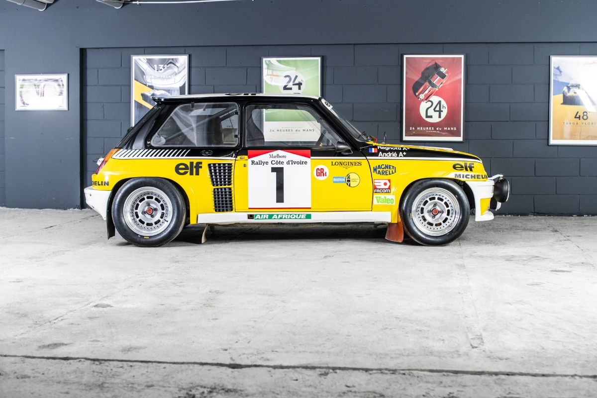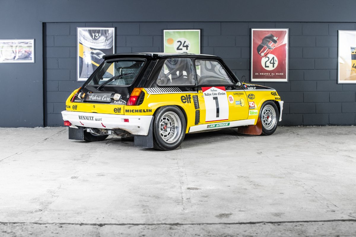 Véritable Groupe 4 usine, cette Renault 5 Turbo est directement issue du service compétition de Renault Sport et conserve les caractéristiques propres aux voitures officielles de l’époque. Elle se distingue notamment par son moteur Renault Sport développant environ 260 à 270 chevaux, son système de lubrification à carter sec, son échangeur air/eau Chausson, son turbocompresseur spécifique, ses suspensions De Carbon réglables et sa caisse renforcée Matter. À son retour du Bandama, la voiture est conservée par Renault Sport avant d’être offerte en 1984 à Jean Ragnotti par Patrick Landon, alors responsable du programme rallye.