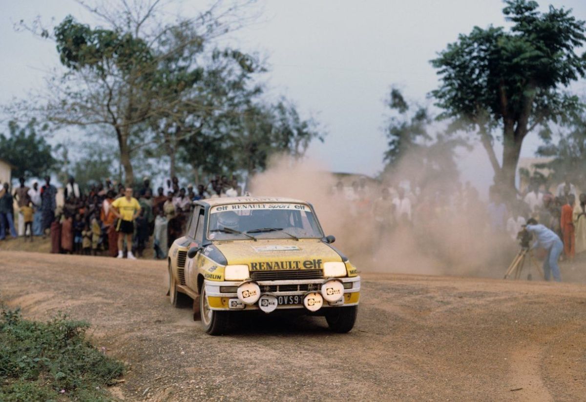 Pour la saison 1982, Renault engage ses R5 Turbo sur certaines manches du Championnat du Monde des Rallyes, dont le redoutable Rallye de Côte d’Ivoire, plus connu sous le nom de Bandama. Disputée sur des milliers de kilomètres de pistes africaines particulièrement éprouvantes, cette épreuve compte parmi les plus exigeantes de son époque. L’exemplaire présenté est confié à Jean Ragnotti, figure emblématique et charismatique du rallye français, dont le style de pilotage s’accorde parfaitement au tempérament de la voiture. Associé à Jean-Marc Andrié, il affronte des conditions extrêmes et une concurrence de premier plan, notamment Michèle Mouton. Malgré un début de course prometteur, l’épreuve rappelle toute sa dureté : à la suite d’un incident et d’une note mal anticipée, la voiture s’envole sur une bosse avant de retomber violemment, entraînant une sortie de route et l’abandon. Elle est ensuite rapatriée en France et réintègre les ateliers de Renault Sport.