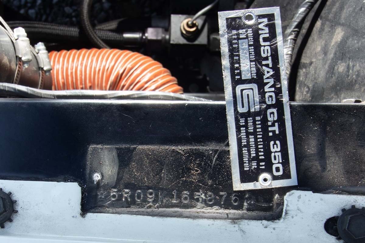 Notre voiture est l’une des cinq Shelby GT350 utilisées pour les relations publiques en 1965. Elle a ensuite été transformée en version R et utilisée sur des circuits américains depuis le début des années 1970 (le carnet d’entretien est fourni avec le véhicule). Ses numéros Ford et Shelby sont concordants. Le véhicule immatriculé 5S112 a appartenu au même propriétaire depuis sa sortie d’usine et son historique est parfaitement documenté. Pour un historique plus détaillé et un extrait du registre Shelby, veuillez consulter la section « Historique » ci-dessous.
