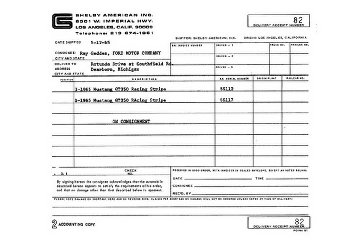 Our car was one of five Shelby GT350 used for Public Relations in 1965 after which it was converted to R specification and used on local US-racetracks since the early 70ies (logbook is with the car). Its Ford and Shelby numbers are matching and 5S112 has continuous ownership from new and is very well documented. For a more detailed history and excerpt from the Shelby Registry, please see the History section below.