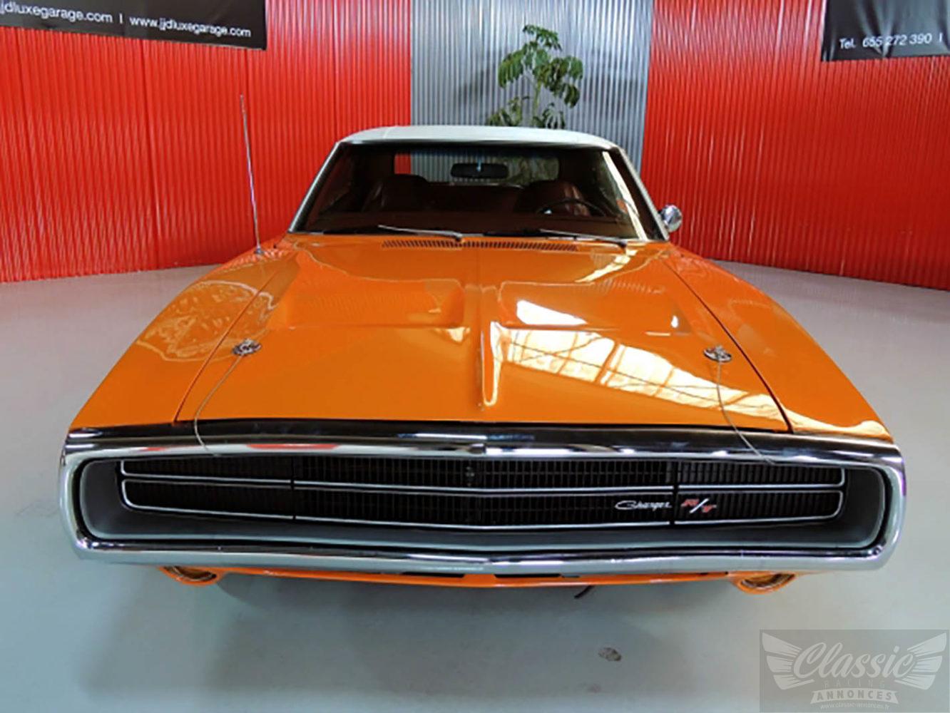 Vends Dodge Charger RT 1970 Coupé Hardtop, Boite manuelle à 4 vitesses. Shifter Hurst. Couleur et intérieur d’origine orange (Go Mango), cuir brun. La Dodge Charger a été entièrement restauré suivant spécifications d’origine. Parfait état mécanique, carrosserie et intérieur. Importation US avec documentation d’origine US. Pas de Reprise. La Dodge Charger est une voiture de la marque Dodge et fabriquée par la compagnie Chrysler. Venue sur le marché en 1966, elle est toujours commercialisée sous le modèle de 8e génération…...